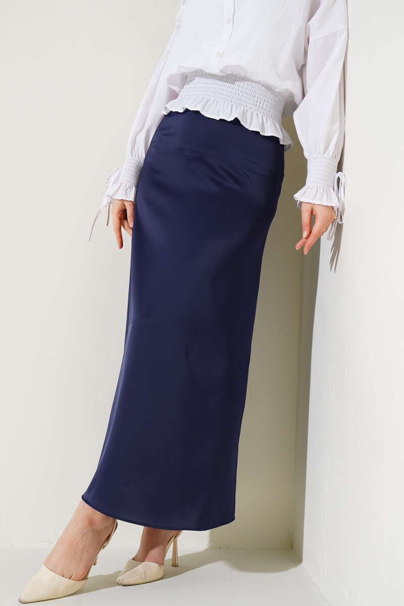 Çıma Şeritli Kemerli Etek Çağla Yeşili