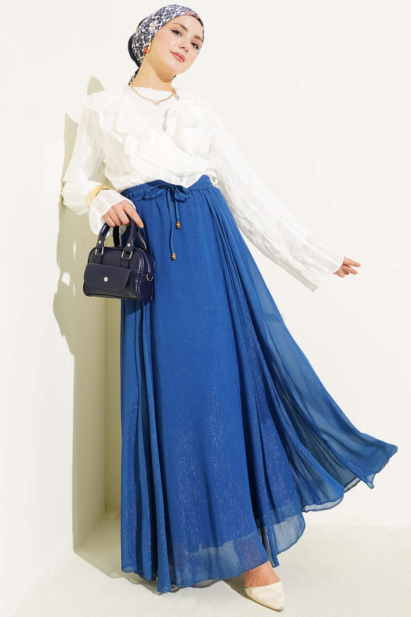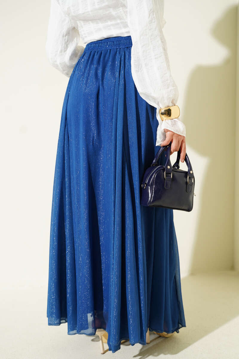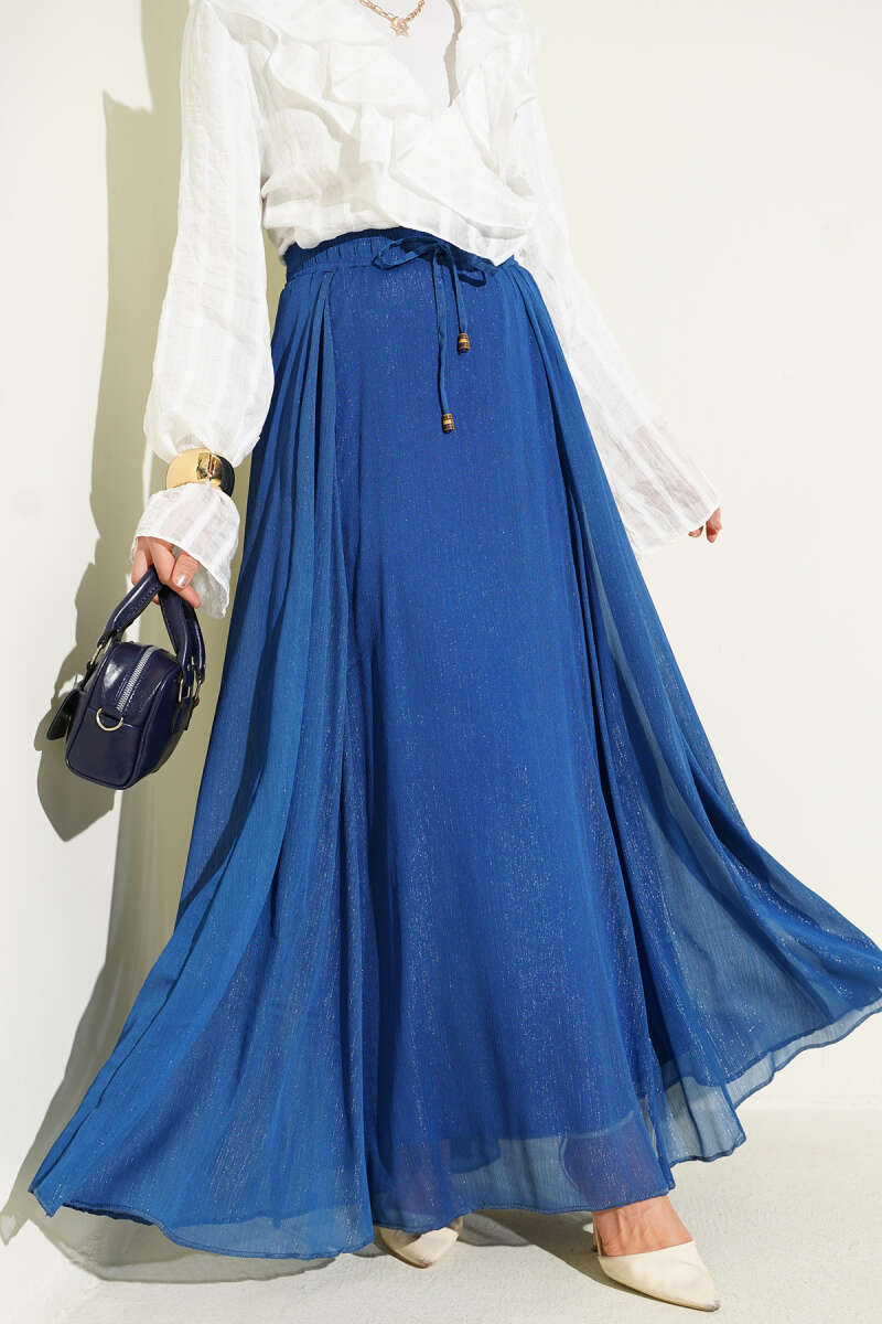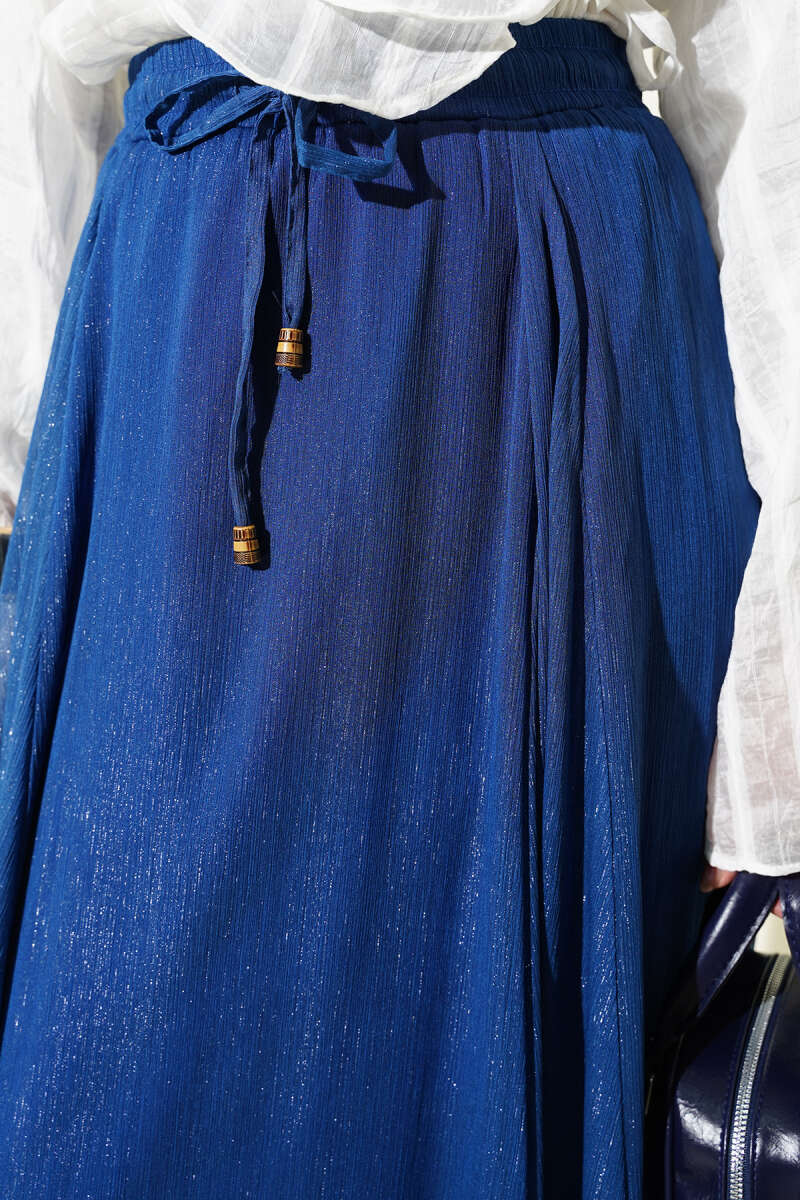 Kemerli Cepli Beli Lastikli Kot Etek Mavi