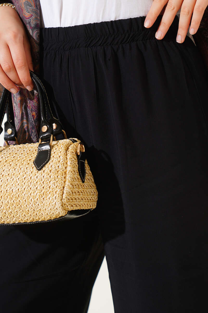 Şerit Geçişli İp Bağcıklı Pantolon Siyah