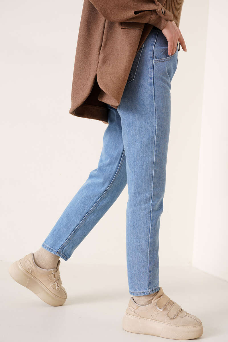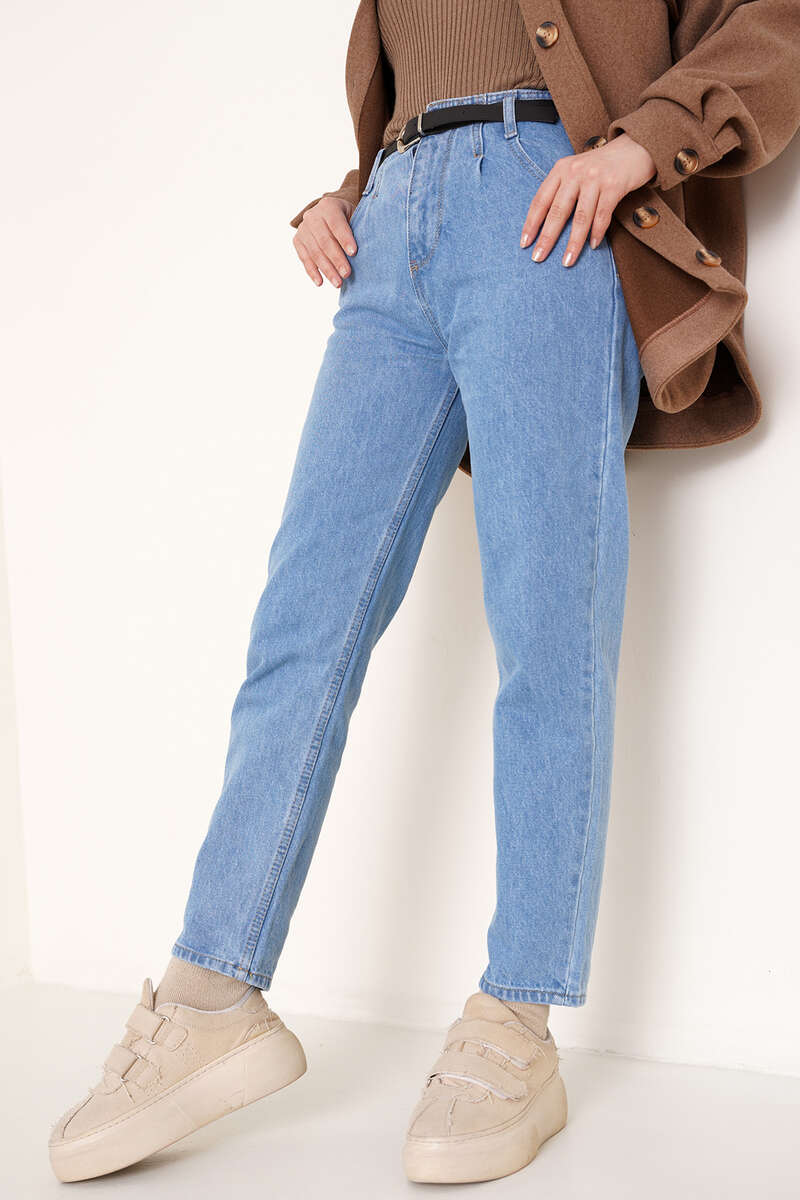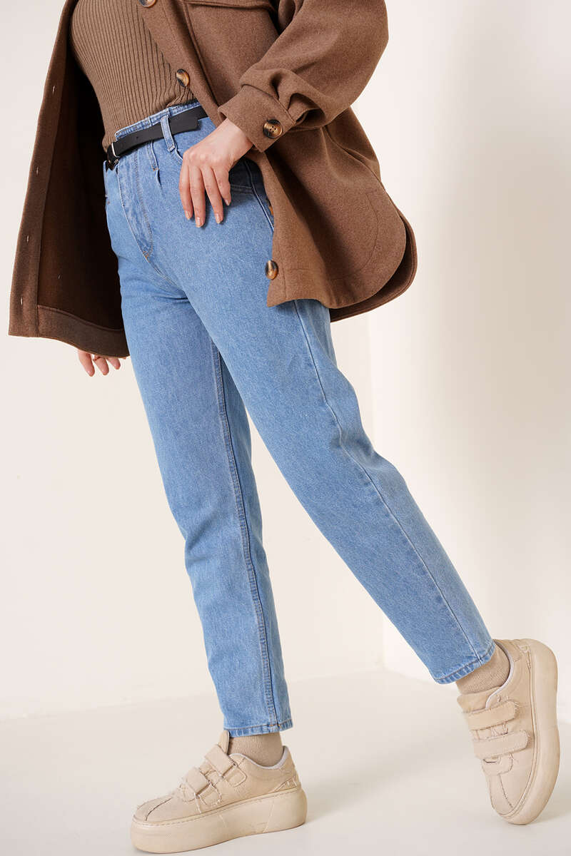 Yeni sezon jean pantolon beli pens detalıdır. İki ön iki arka cebi bulunan pantolonumuz beş adet kemer köprüsünüe sahiptir. Beli kemerli olan pantolonumuz düğmeli ve fermuarlı modeldir. Jean pantolonumuz yüksek beldir ve farklı renk seçenekleri mevcuttur.