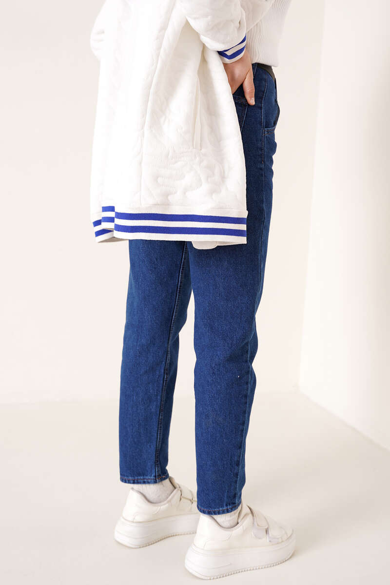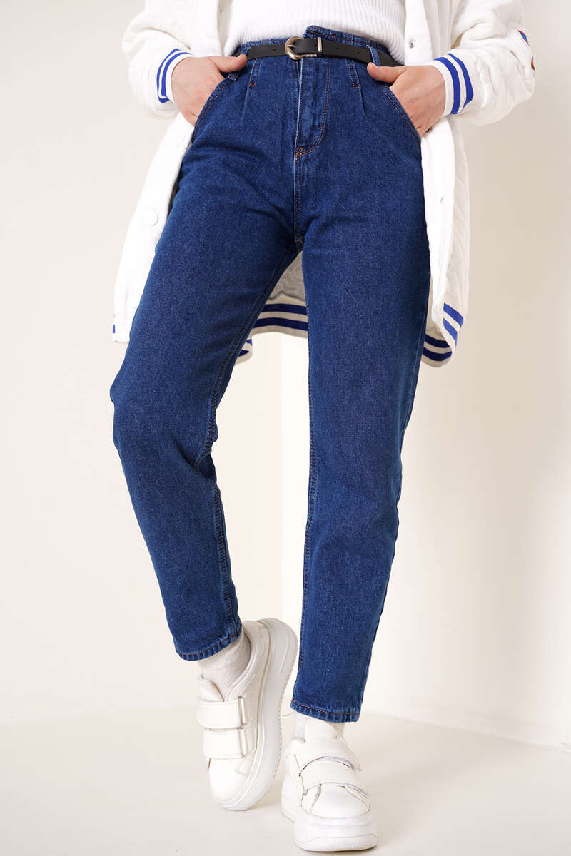 Beli Pensli Kemerli Jean Pantolon Koyu Mavi