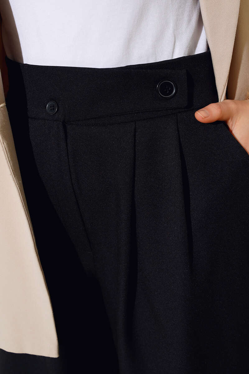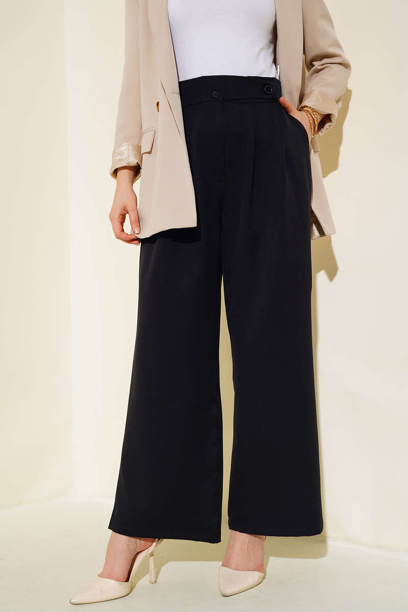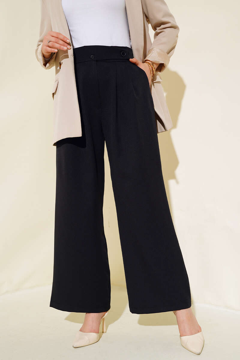 Yeni sezon model pantolonumuz harika görünümüyle sizler için geldi. Pantolonumuzun beli lastiklidir. Önü düğmeli ve fermuarlıdır. Salaş modeldir. İki adet cebi vardır. Beli pileli modeldir. Şık ve zarif pantolon modelimiz kombinlerinizin vazgeçilmez parçası olacaktır.