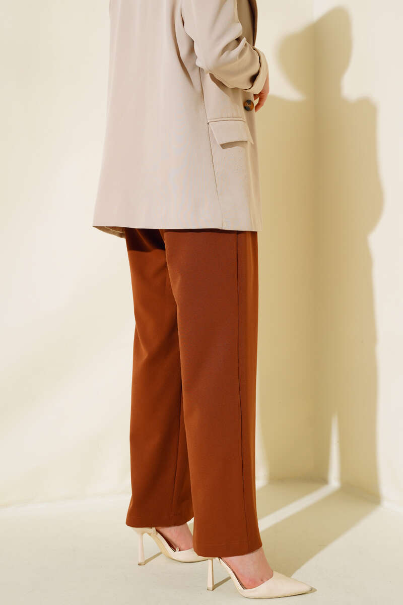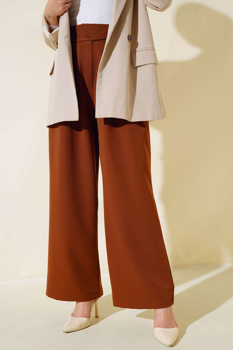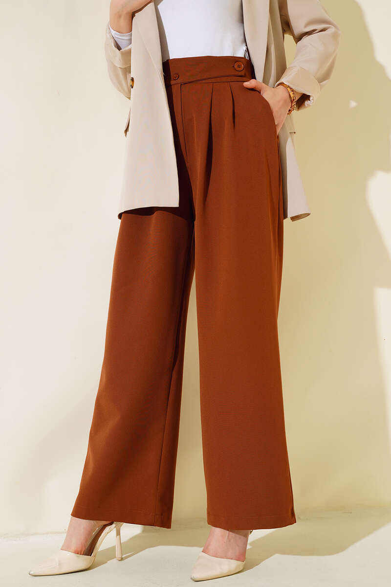 Yeni sezon model pantolonumuz harika görünümüyle sizler için geldi. Pantolonumuzun beli lastiklidir. Önü düğmeli ve fermuarlıdır. Salaş modeldir. İki adet cebi vardır. Beli pileli modeldir. Şık ve zarif pantolon modelimiz kombinlerinizin vazgeçilmez parçası olacaktır.