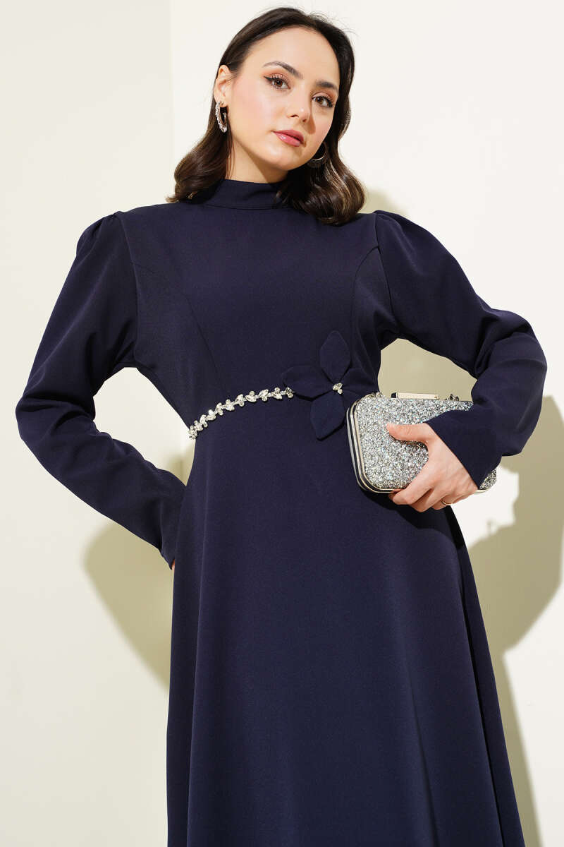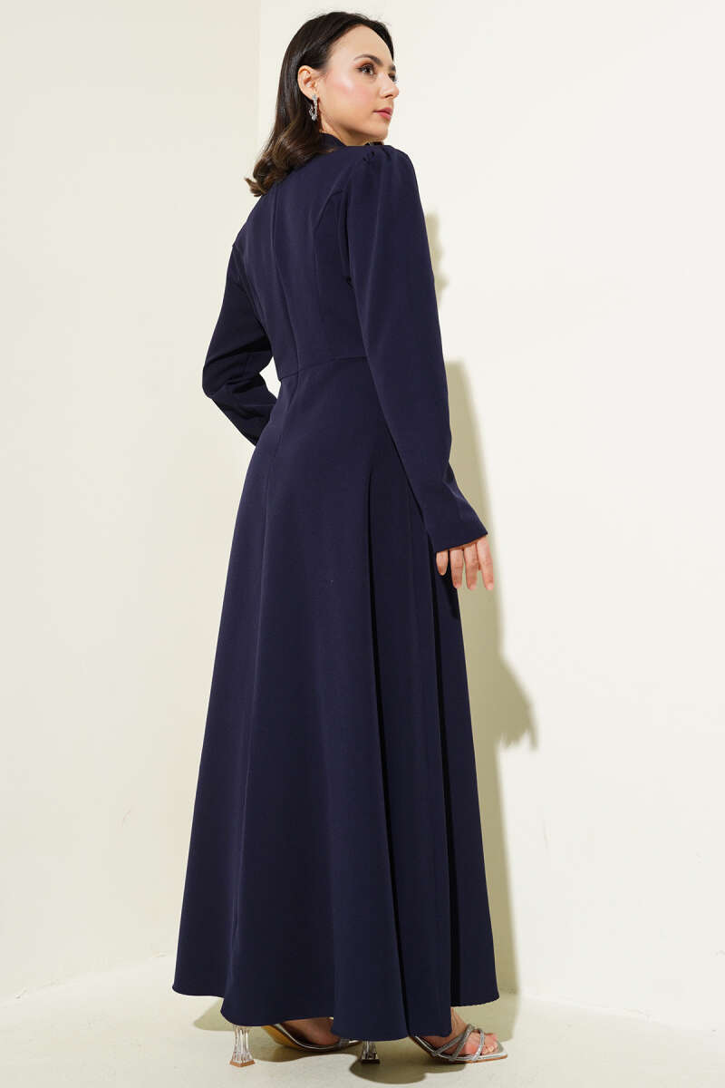Yarım Yaka Fermuarlı Denim Elbise Lacivert