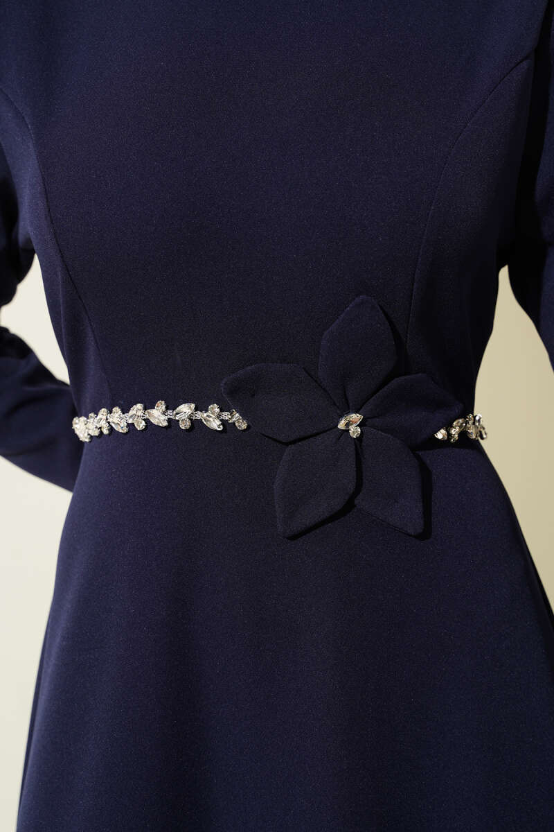 Bel Taşlı Pelerinli Abiye Elbise Siyah