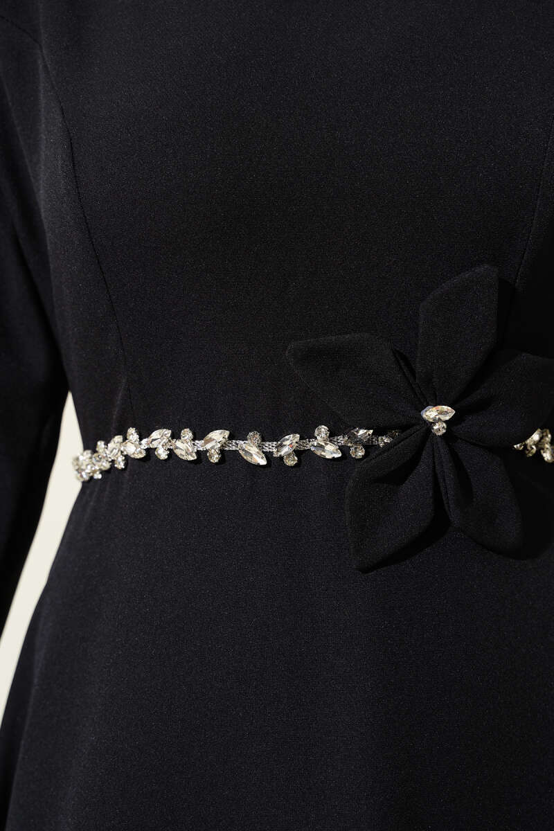 Saç Örgü Kabartmalı Triko Elbise Siyah