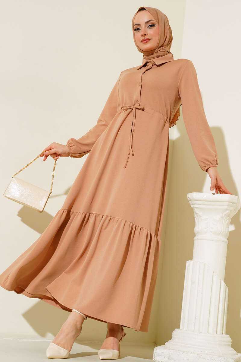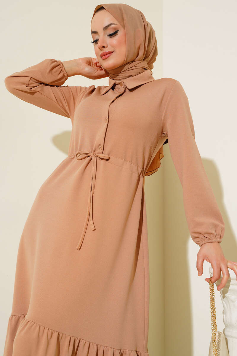 Yeni sezon elbise modelimiz şık tasarımıyla çok seveceksiniz. Beli ip bağlamalı elbisemiz tünelli modeldir. Gömlek yaka modeldir. Kol bilekleri lastiklidir. Zarif elbisemiz size çok yakışacak.