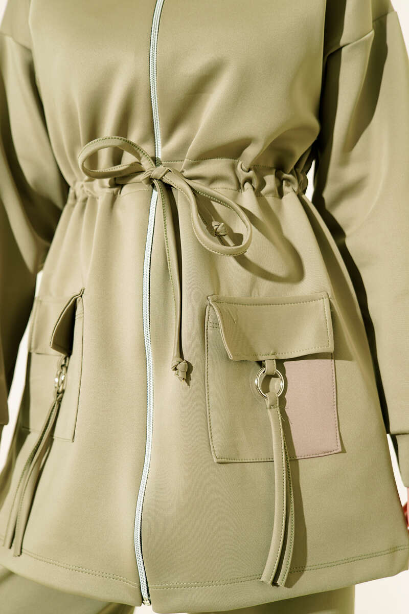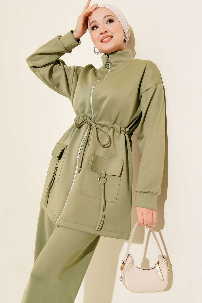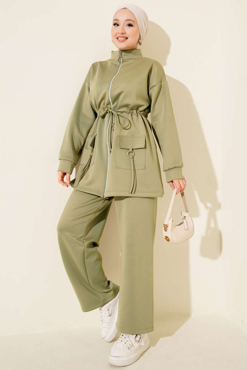 Beli Tünelli Fermuarlı Scuba İkili Takım Vizon