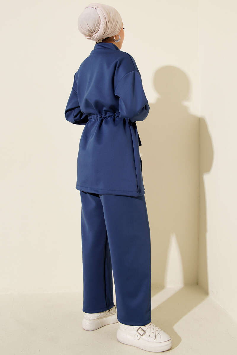 Yaka Taşlı Bel Tünelli İkili Takım Lacivert