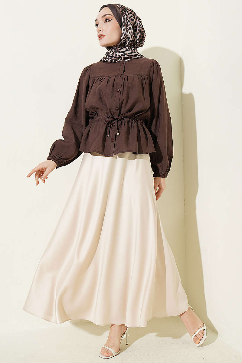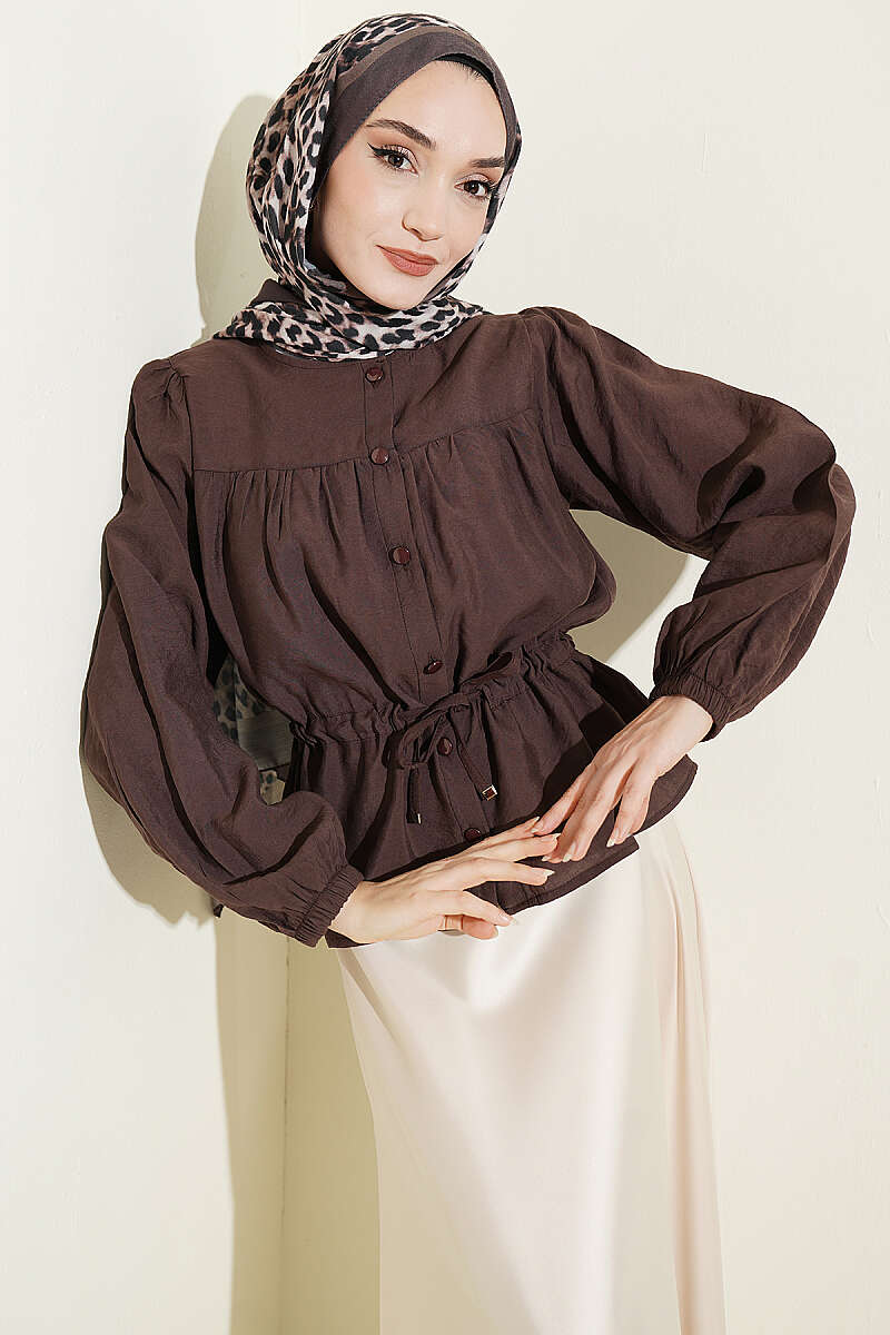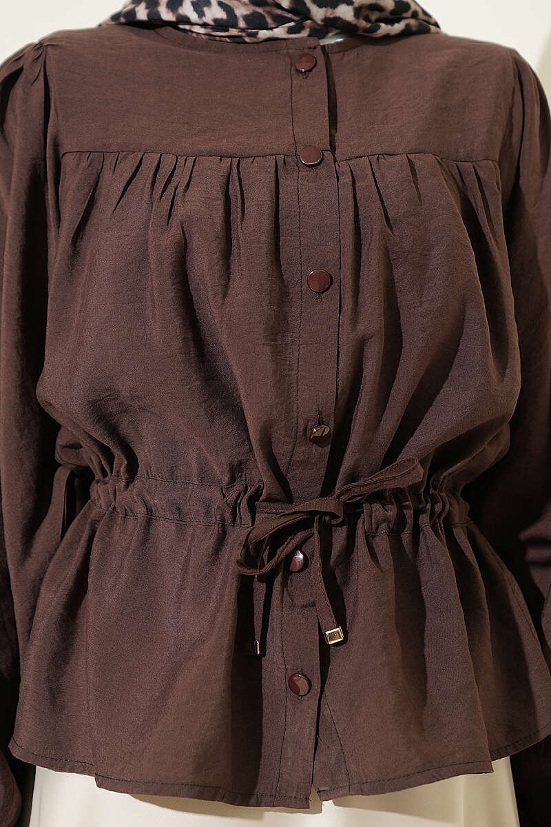 Beli Tünelli Salaş Kısa Gömlek Kahve