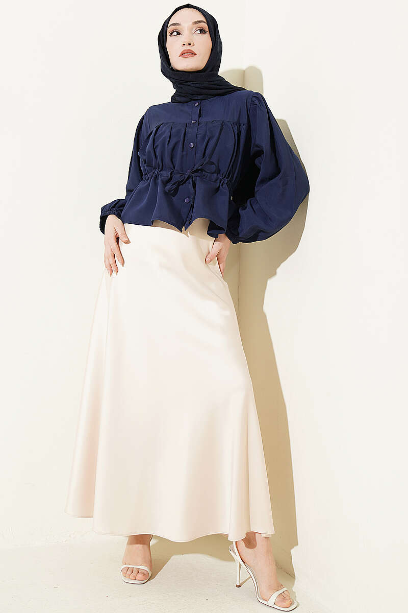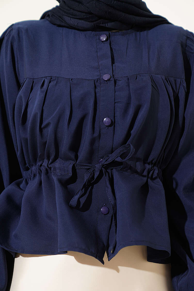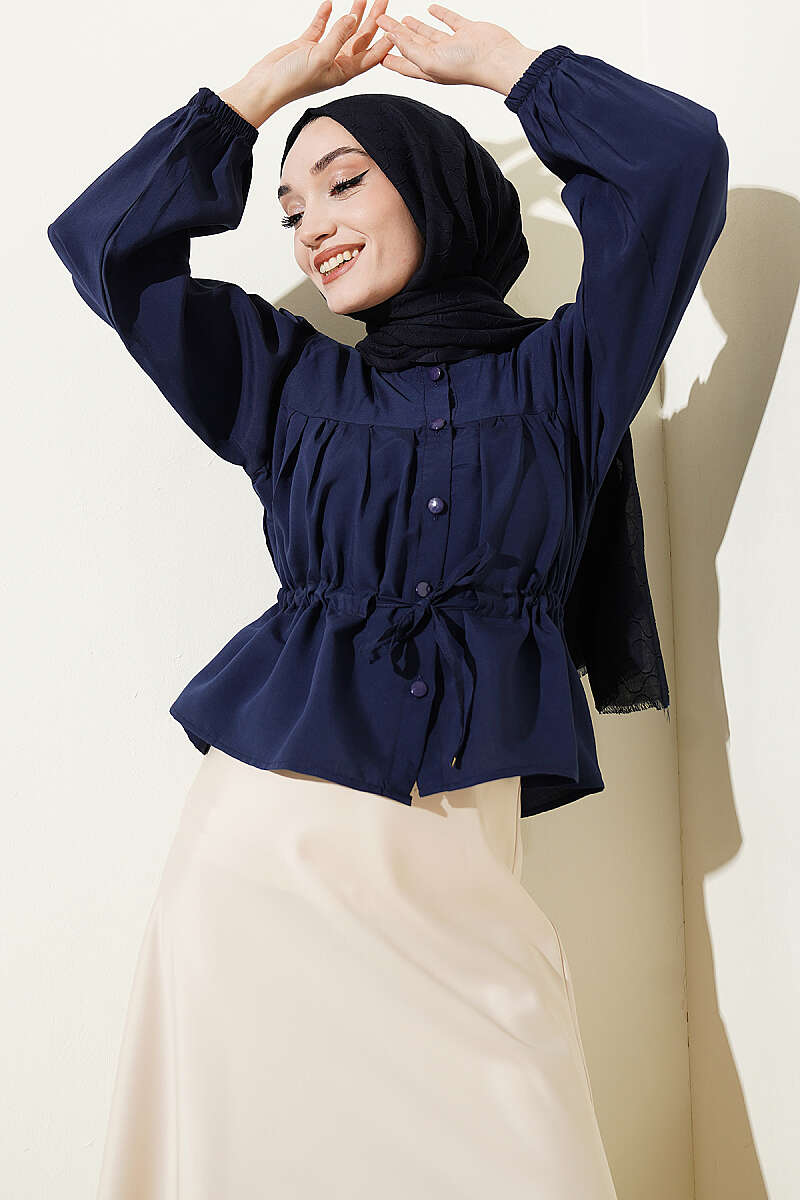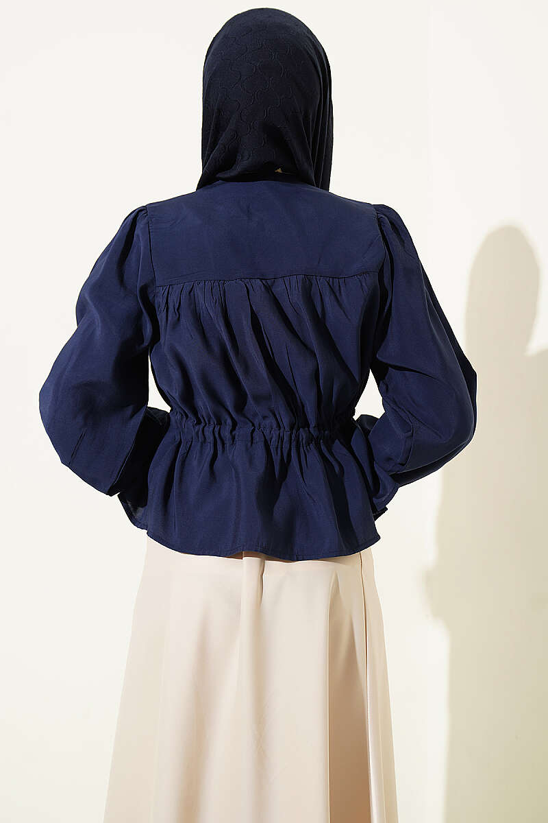 Beli Tünelli Salaş Kısa Gömlek Lacivert