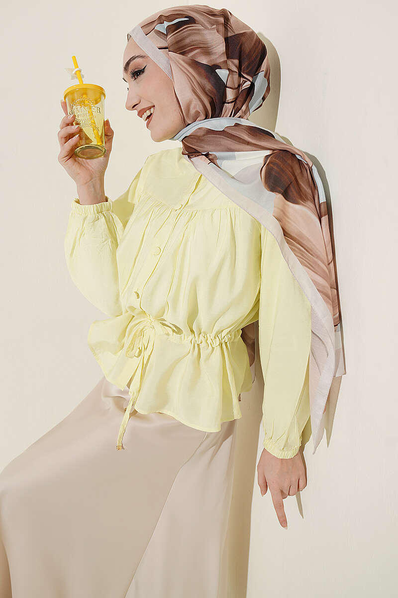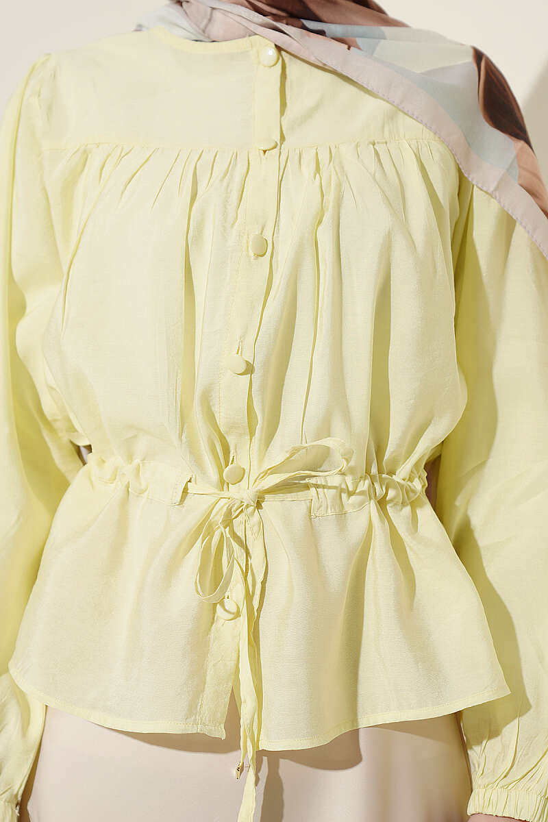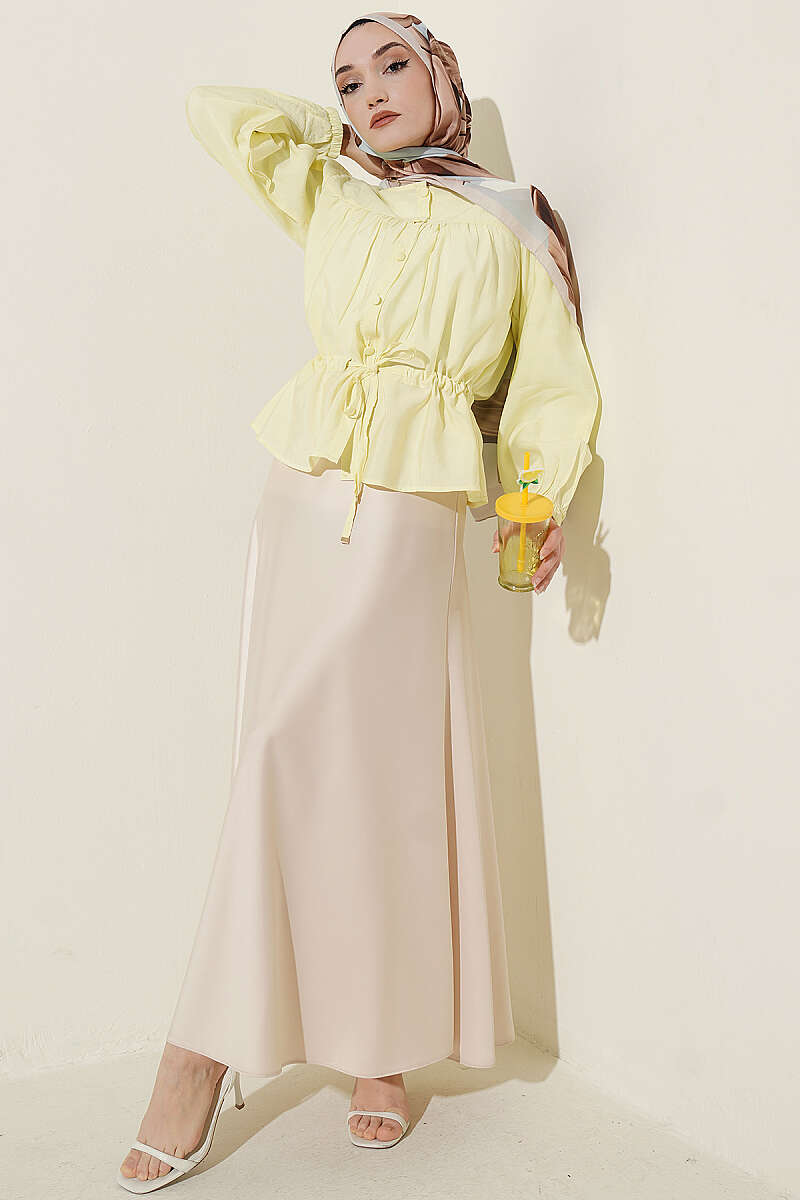 Beli Tünelli Salaş Kısa Gömlek Sarı