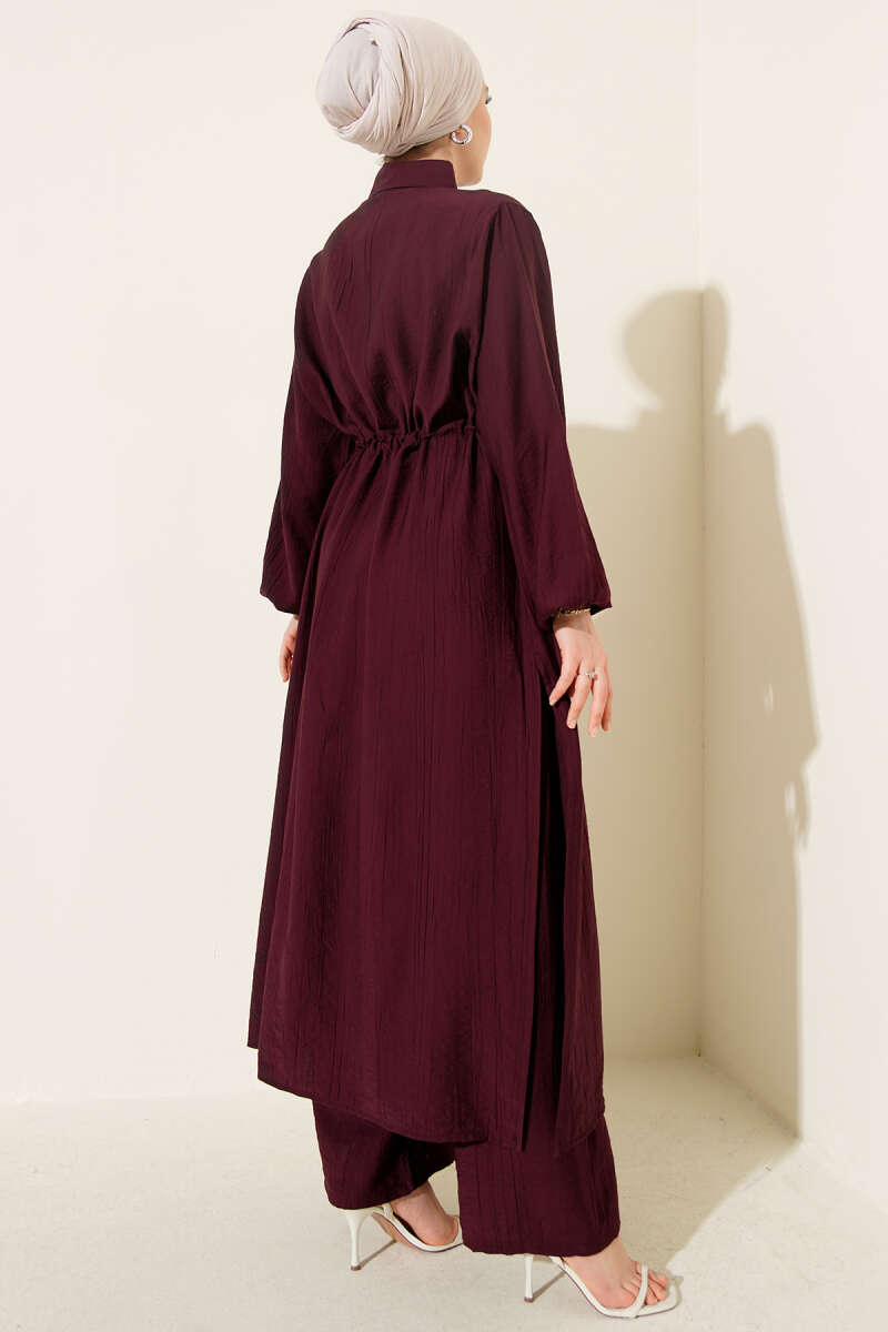 Beli Tünelli Uzun Tunikli İkili Takım Burgonya