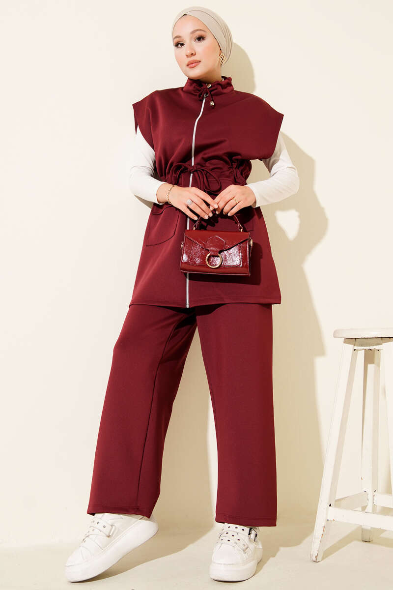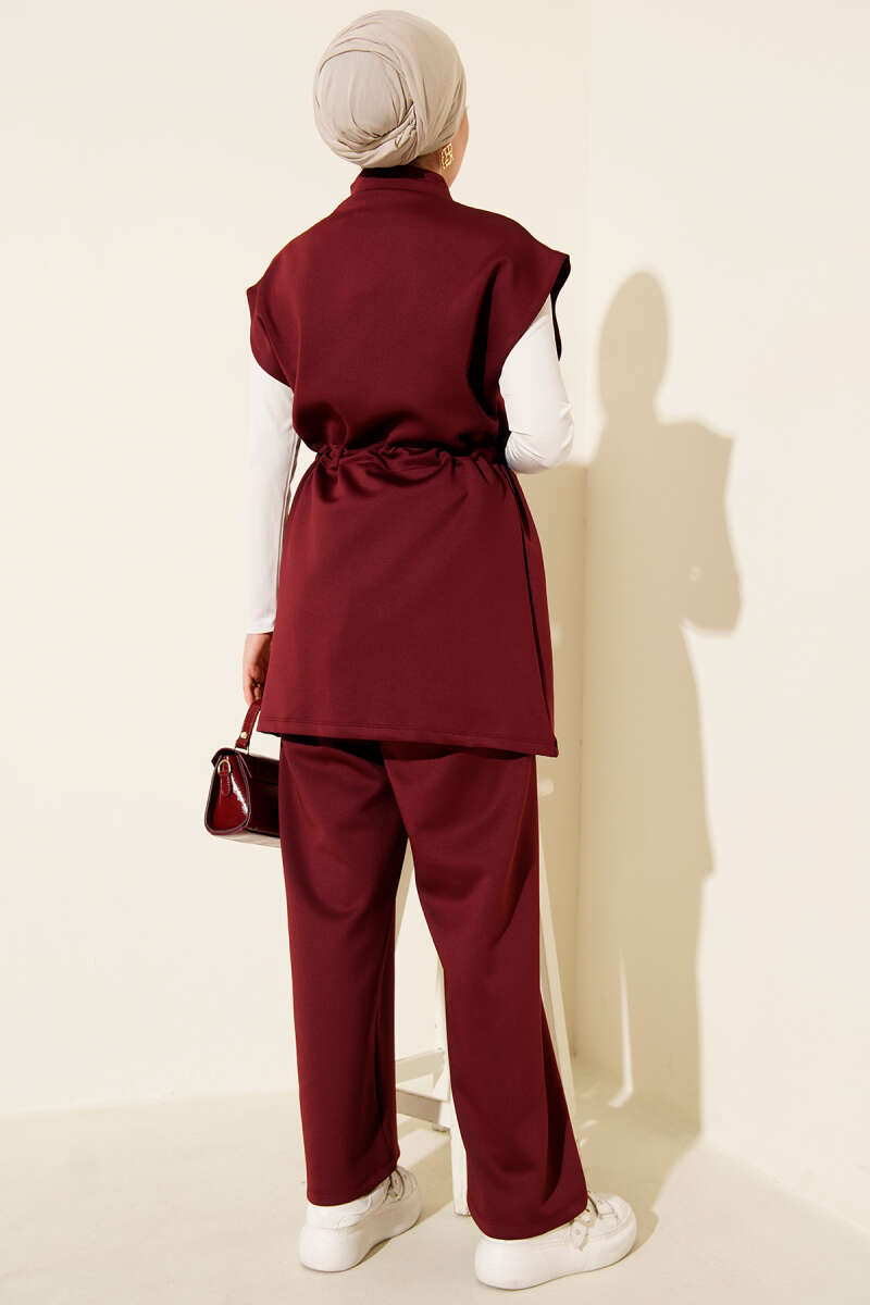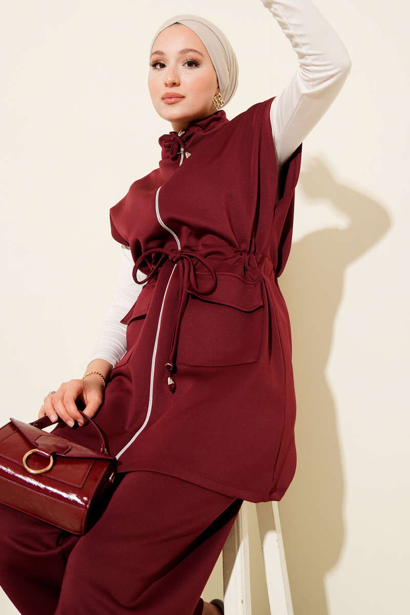 Beli Tünelli Yelekli Scuba İkili Takım Bordo