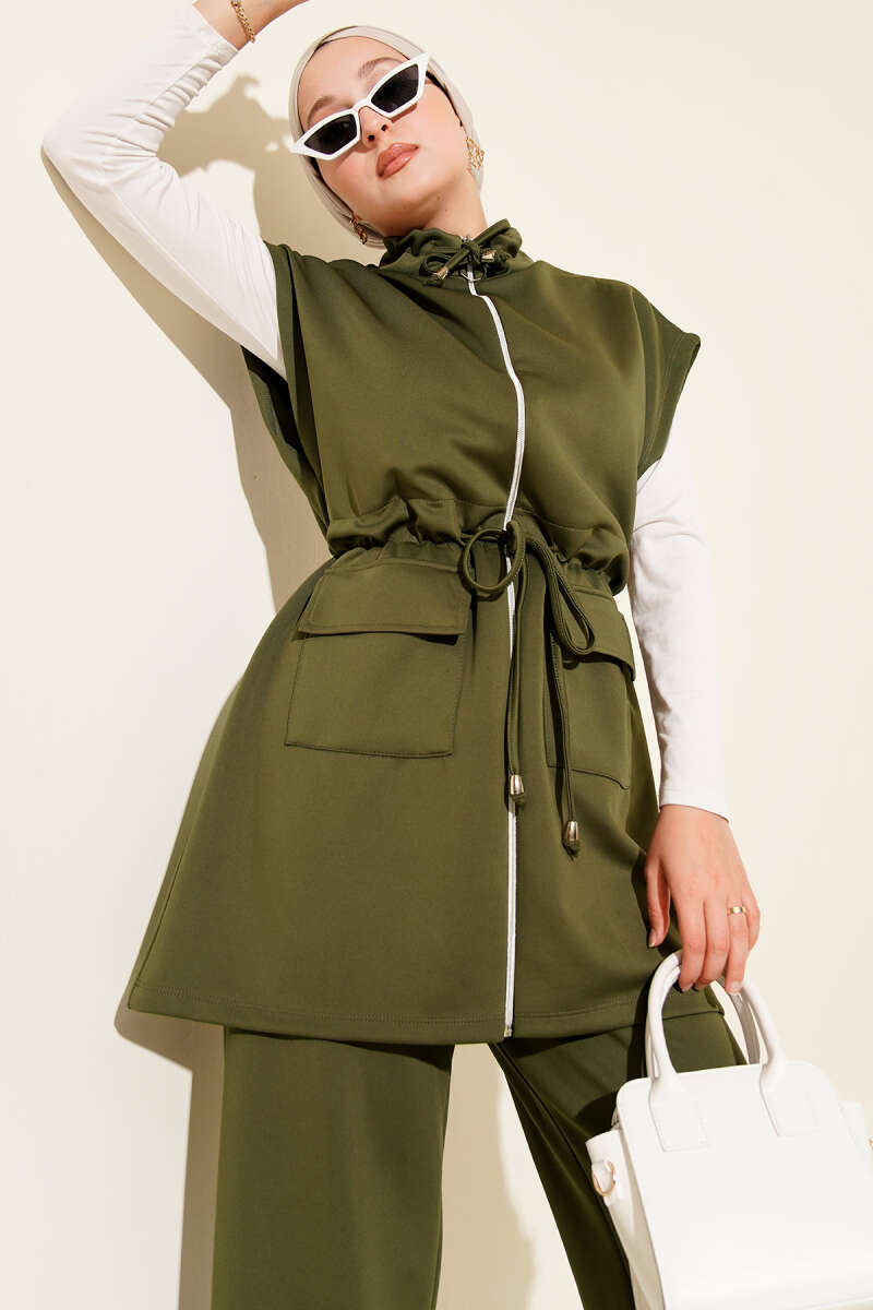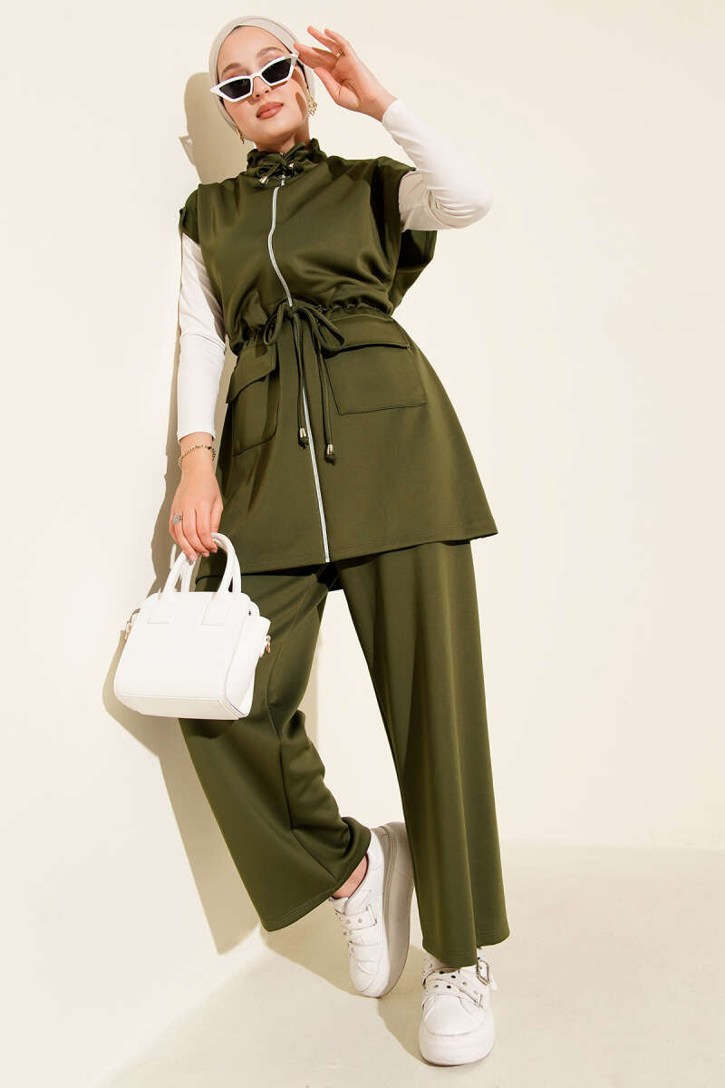 Beli Tünelli Yelekli Scuba İkili Takım Haki