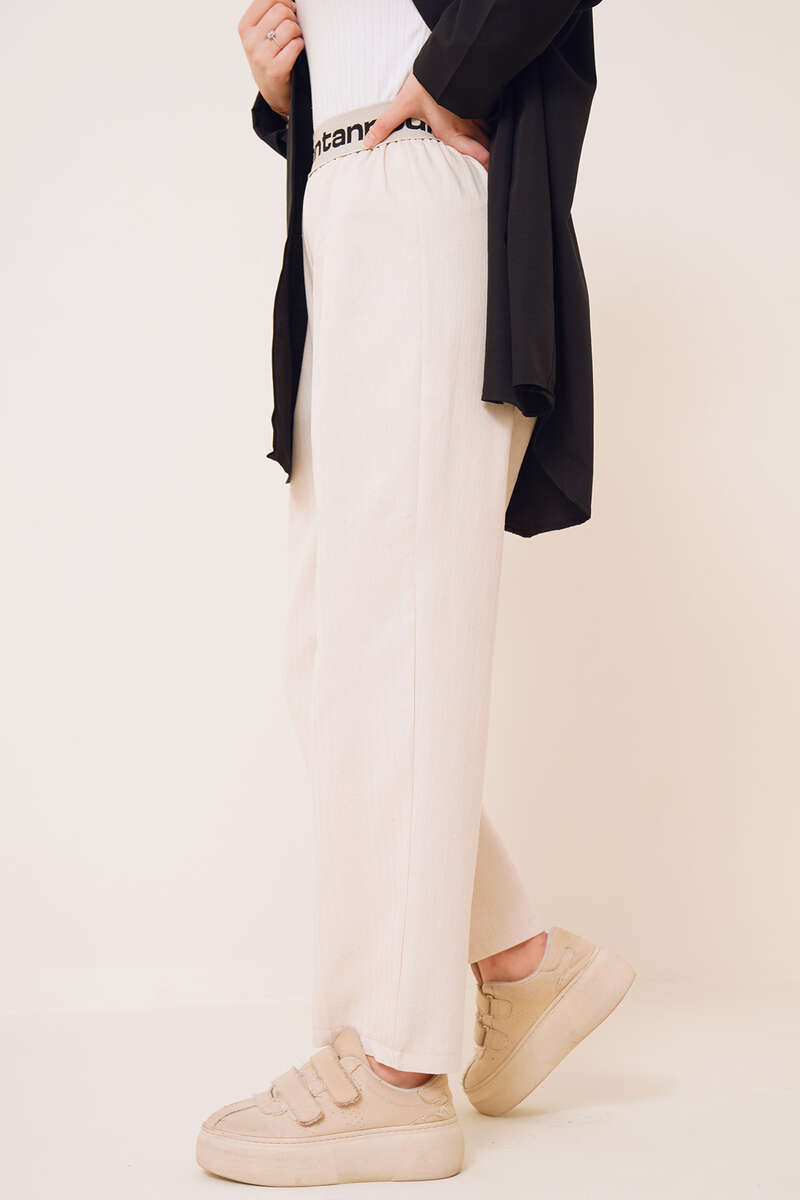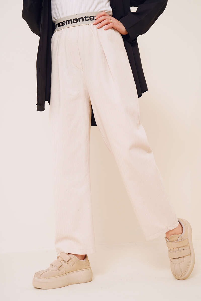 Yeni sezon model pantolonumuz sportif bir görünüm sunmaktadır. Pantolonumuz keten kumaştan yapılmıştır. Beli lastikli ve yazı bulunmaktadır. Önü pens detaylıdır. Oldukça rahattır. Her kıyafetinizle kombin yapabilirsiniz.