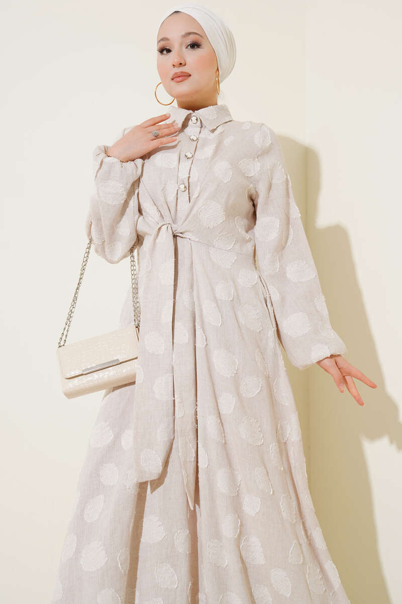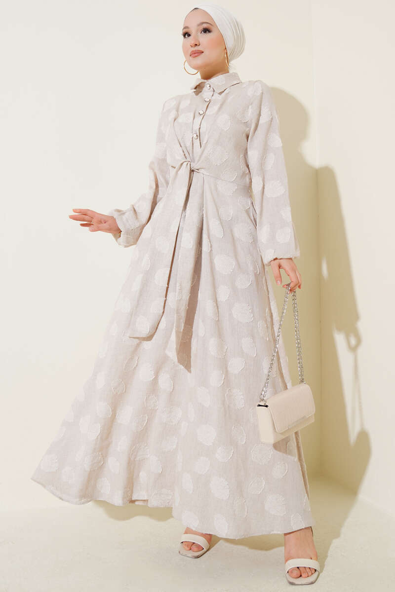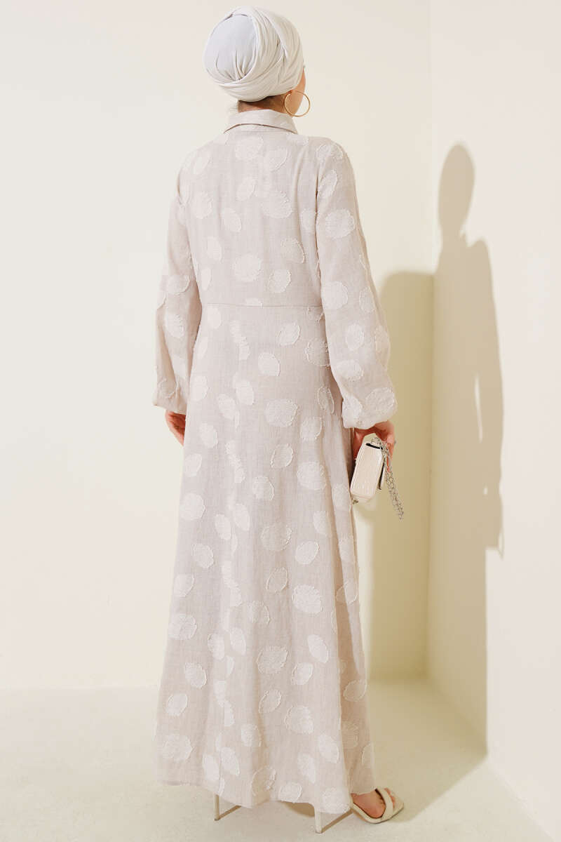 Gül Detaylı Pelerinli Abiye Elbise Pudra
