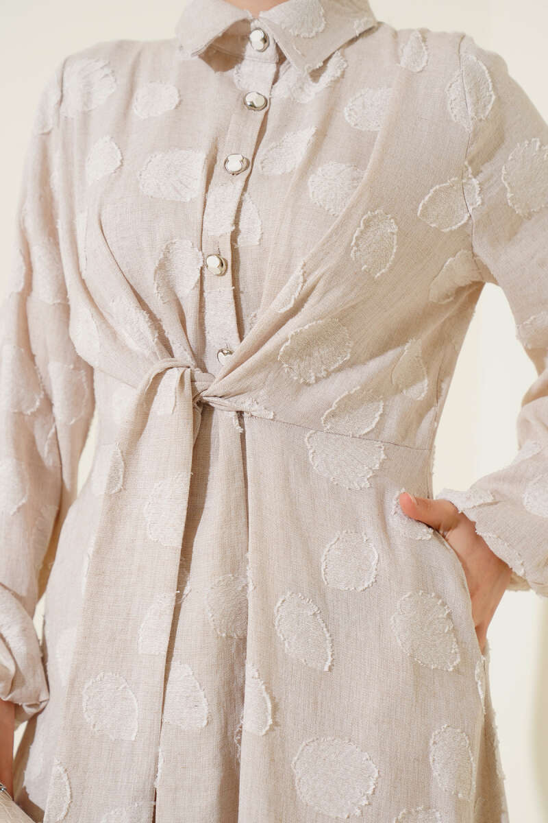 Kolu Kabartma Desen Kolyeli Büyük Beden Tunik Gri