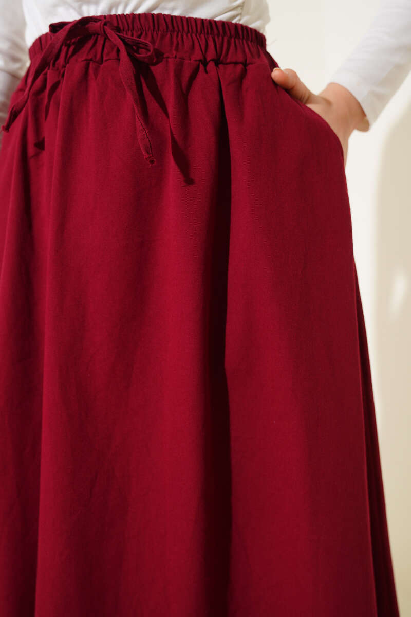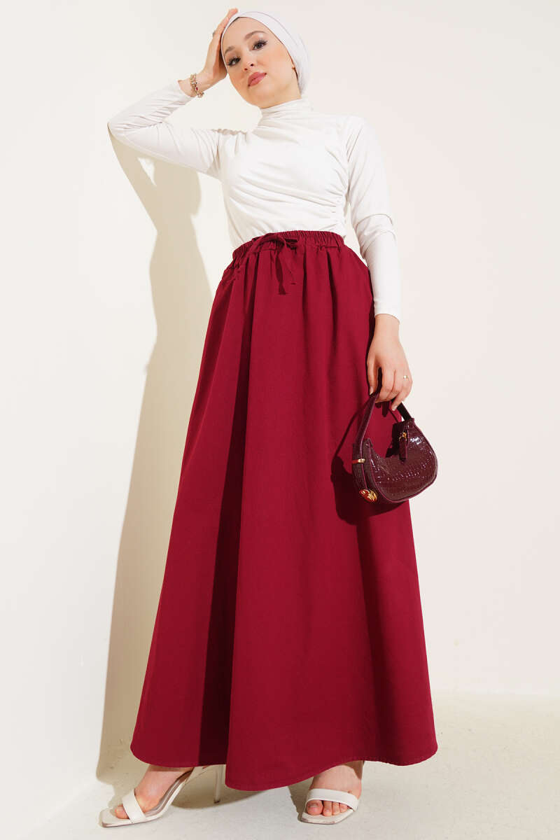 Kemer Aksesuarlı Ekoseli Etek Bordo