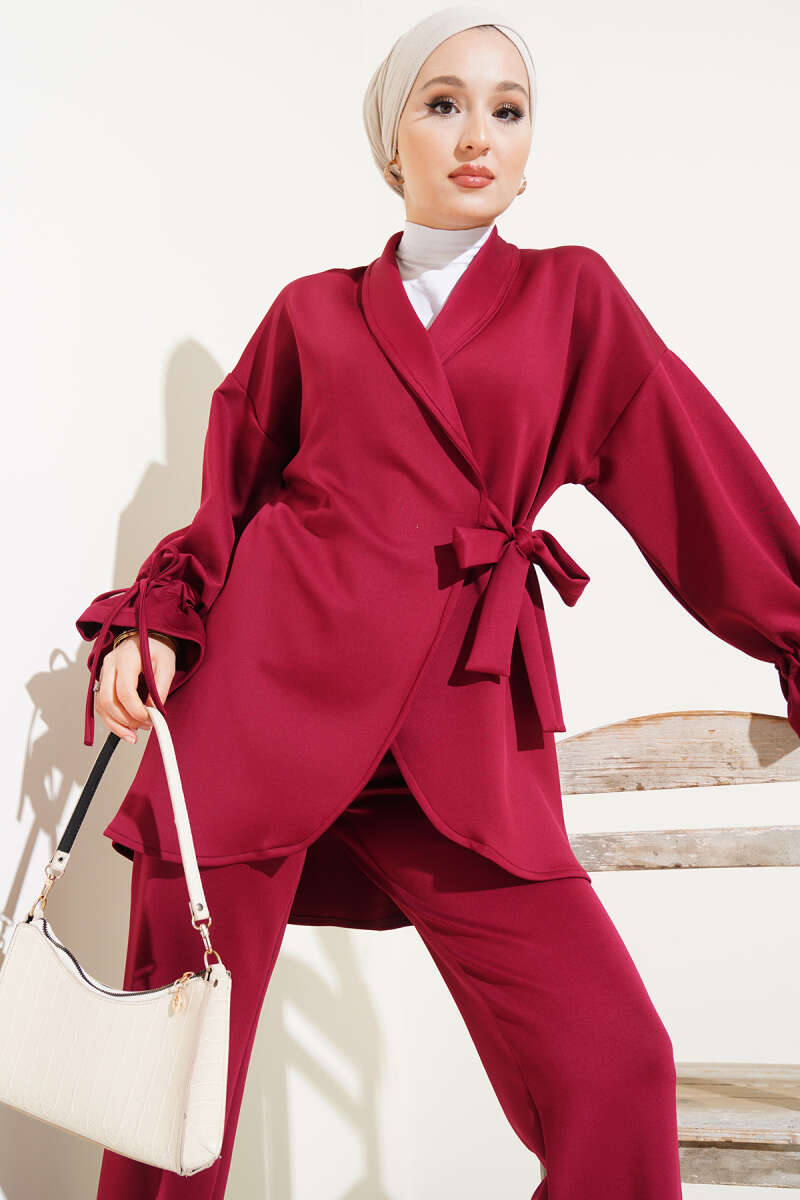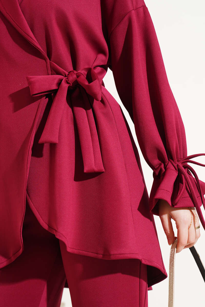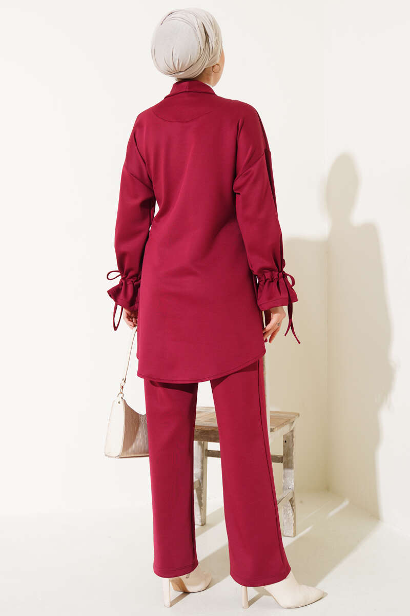 Etnik Desenli İp Bağcıklı İkili Takım Bordo