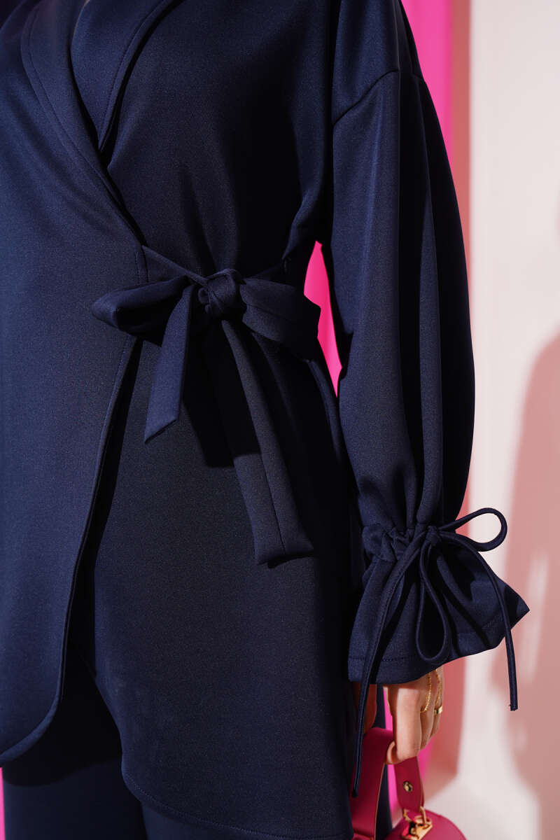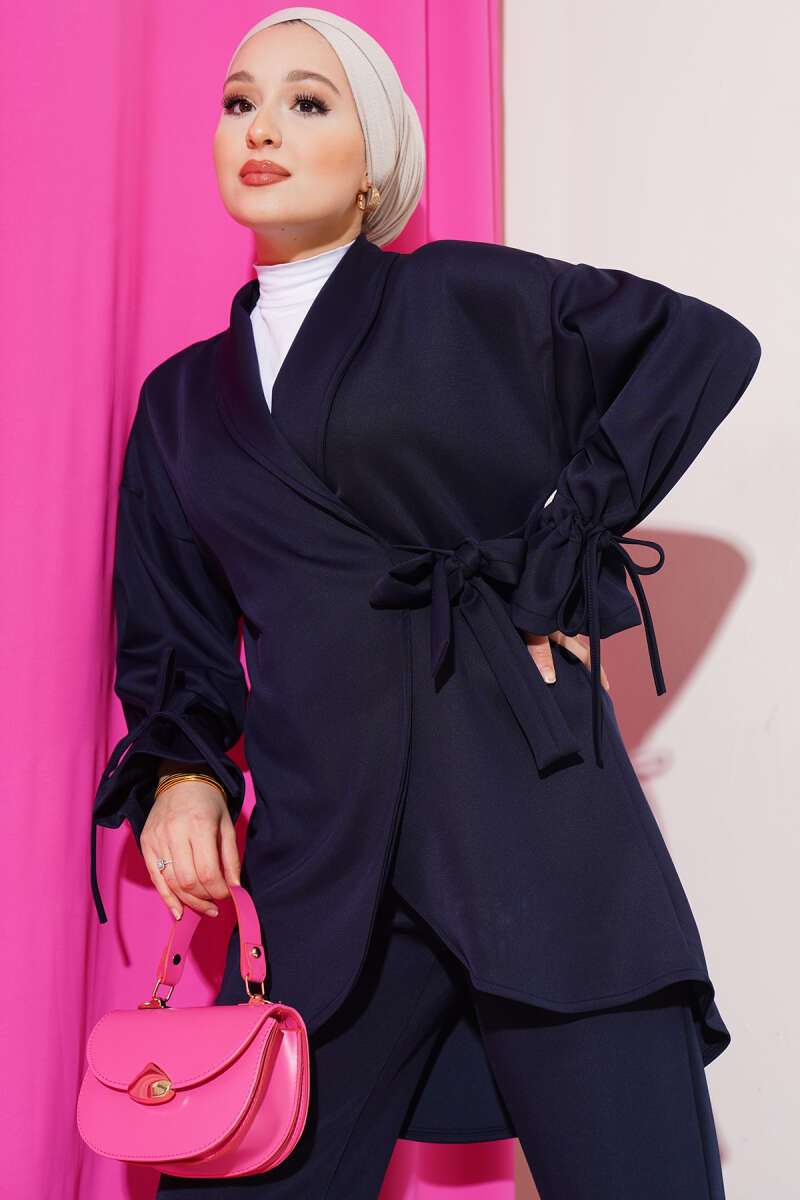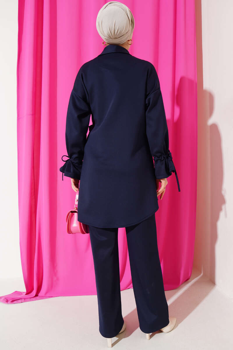 Bisiklet Yaka Fitilli Triko İkili Takım Lacivert
