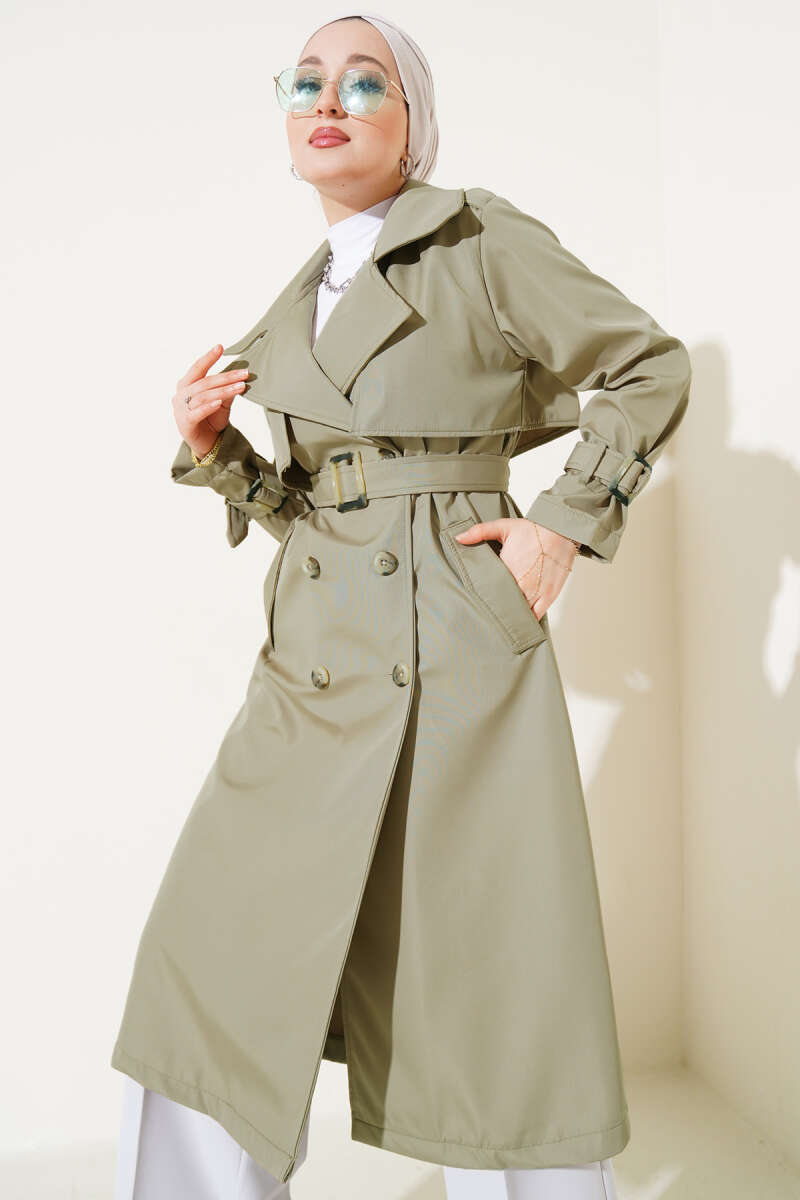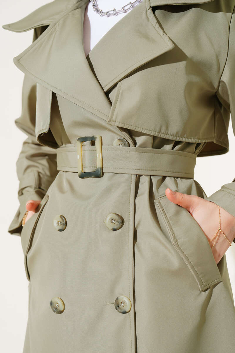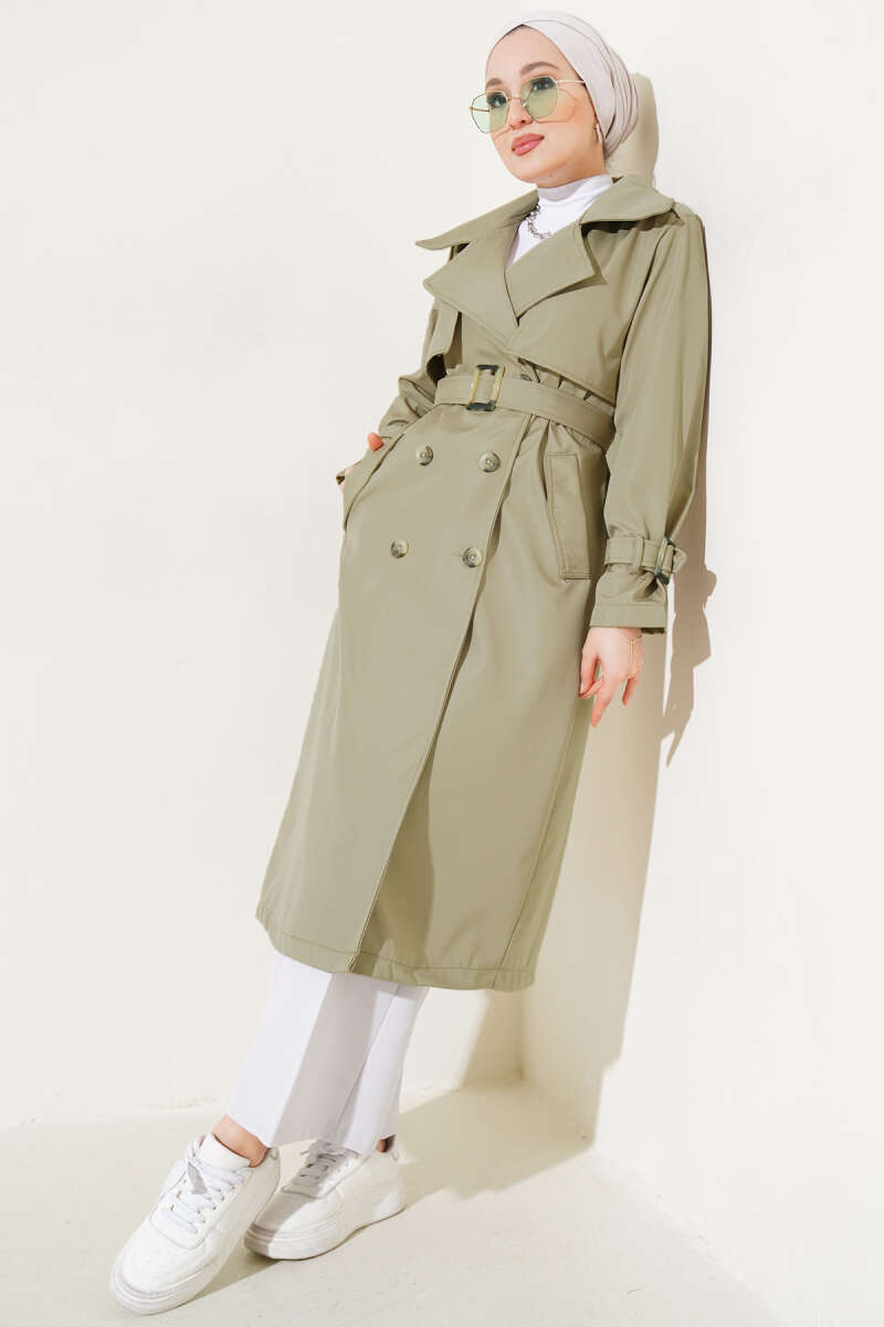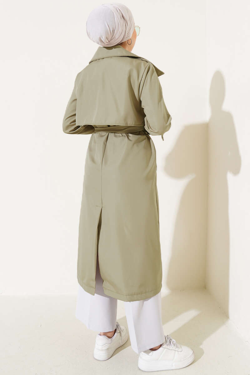 Bileği Kuşaklı Düğmeli Trençkot Nefti