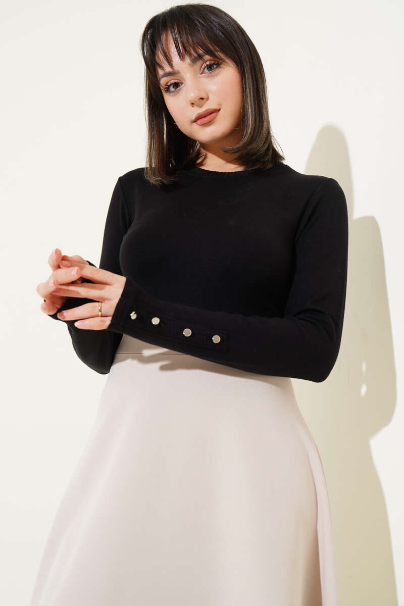 Bileği Metal Düğmeli Body Siyah