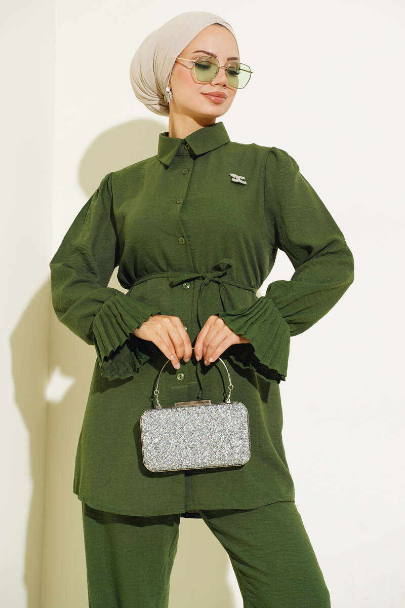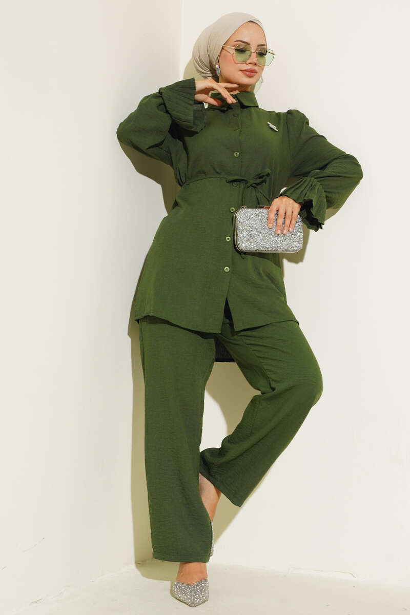 Gömlek Yaka Fitilli Salaş İkili Takım Buz Mavisi