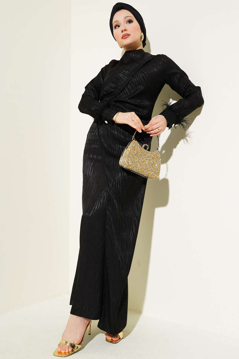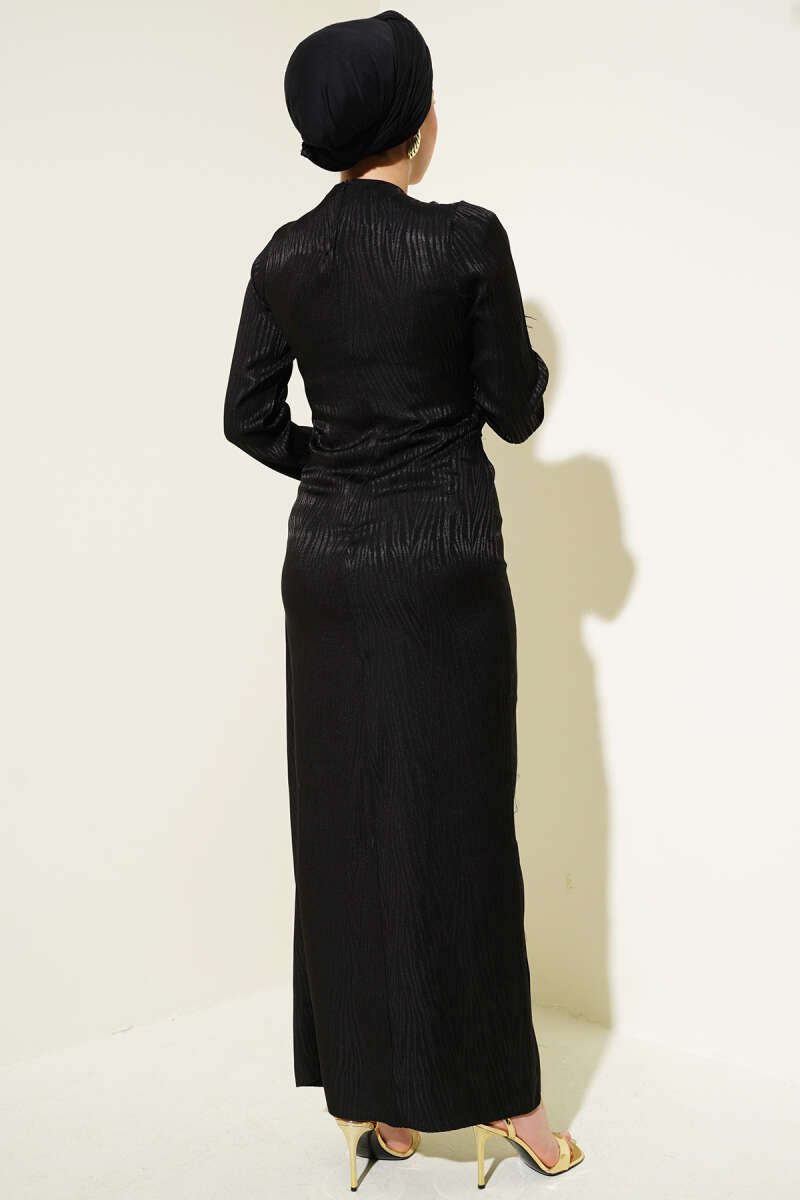 Omuz Pelerinli Taş Detaylı Abiye Elbise Siyah