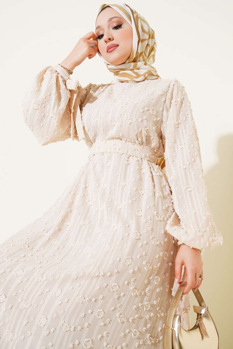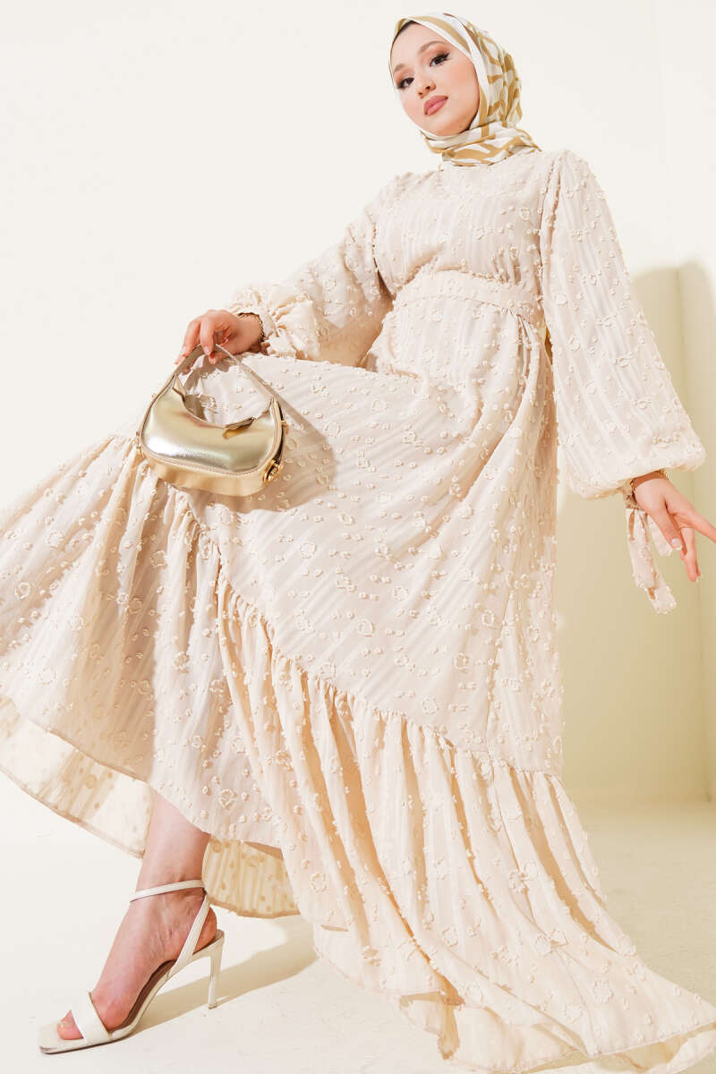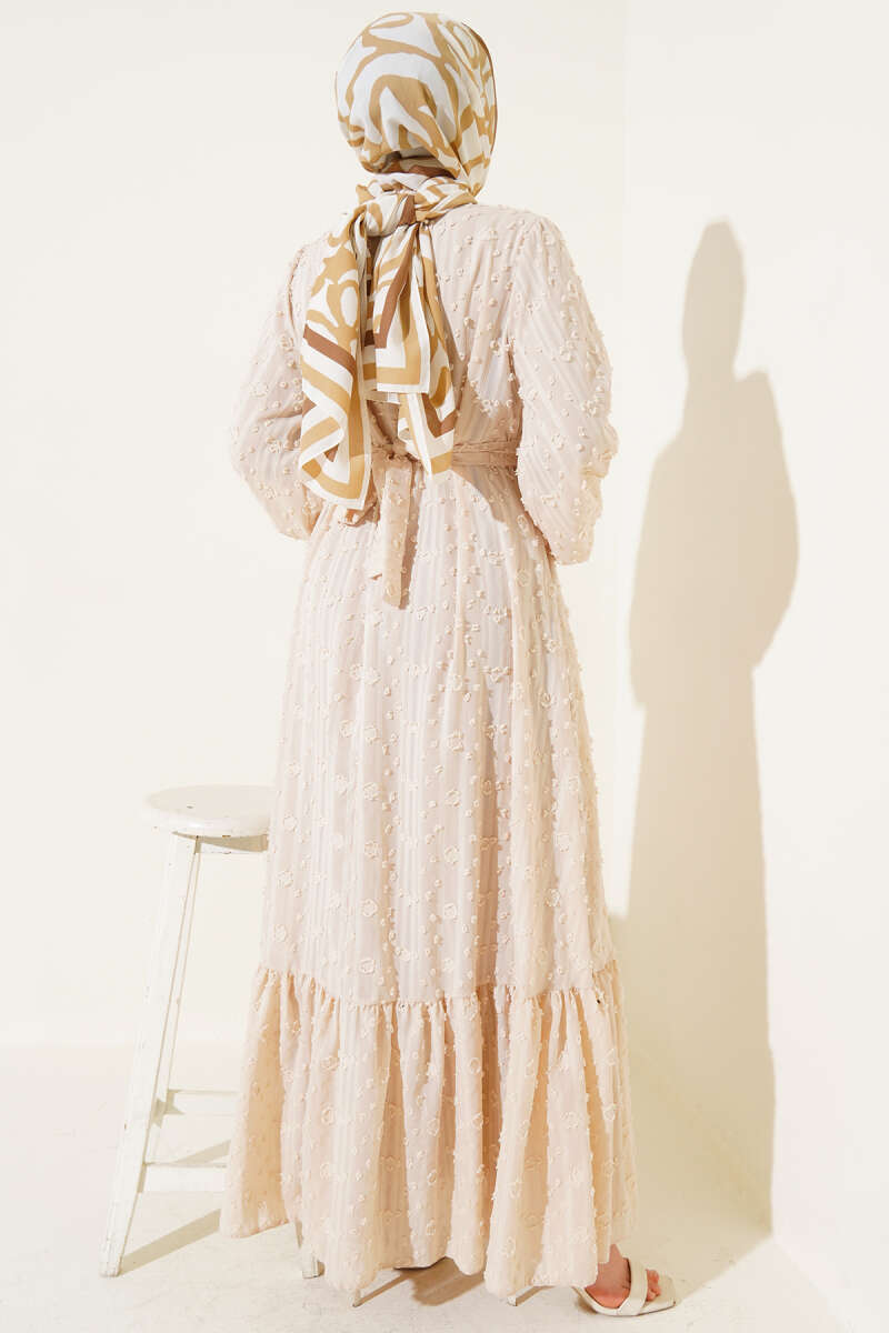 Kolları Fiyonk Detaylı Selanik Elbise Taş