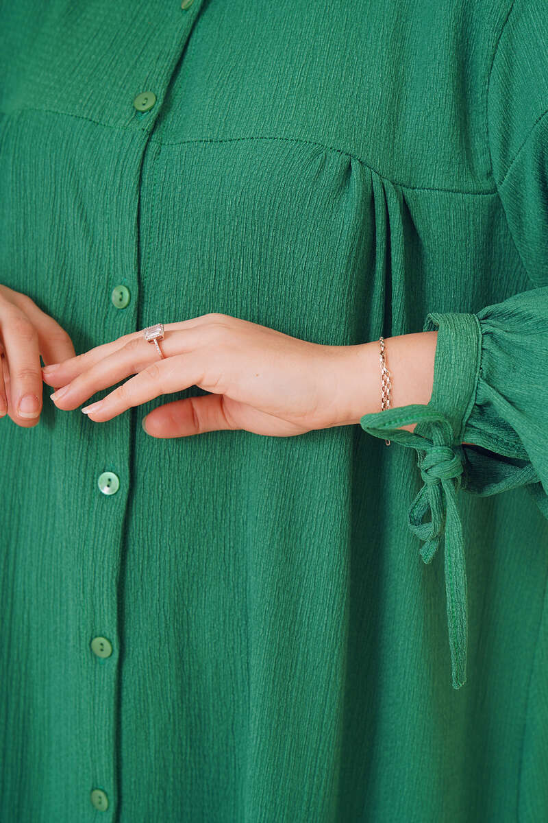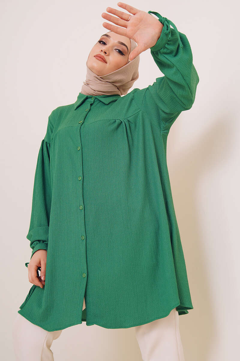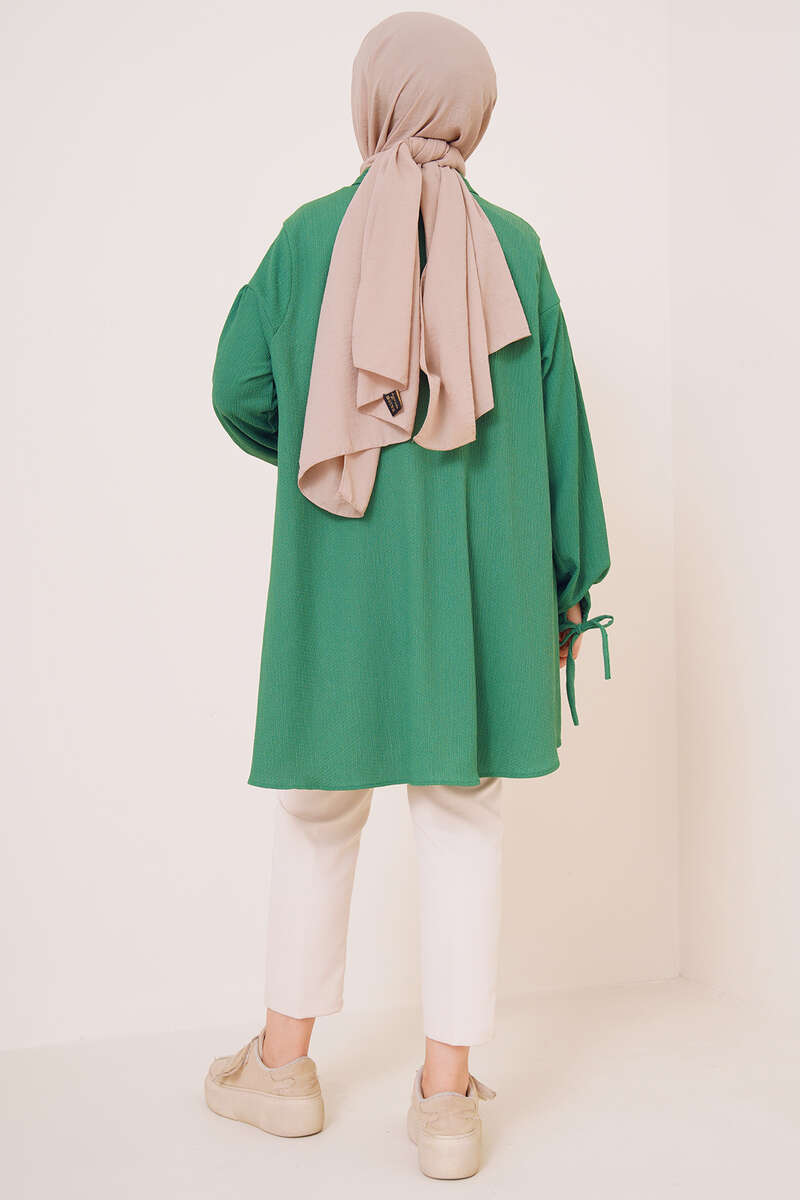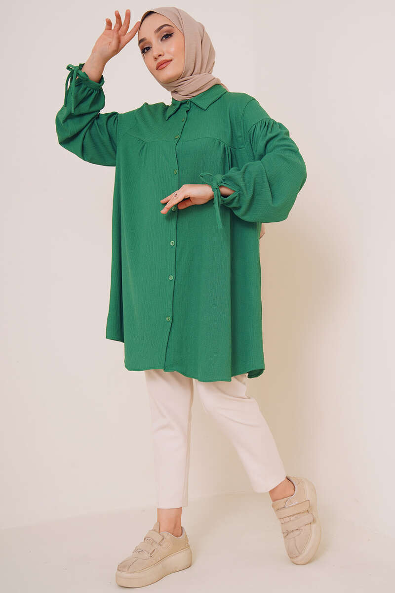 Yeni sezon bürümcük gömleğimiz bileklerinde bulunan bağlama ipleriyle dikkat çekmektedir. Düşük omıuz model olan gömleğimiz salaş görünümüyle kombinlerinizde sportif bir şıklık kazandırmaktadır.