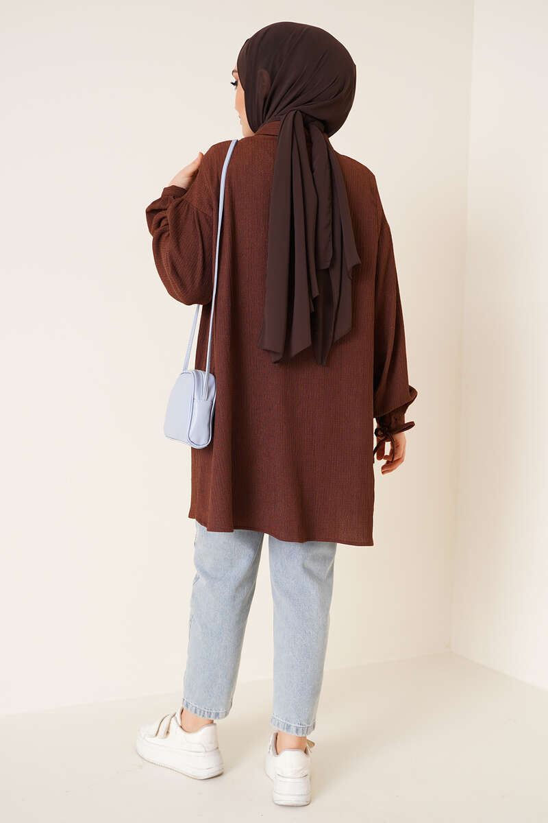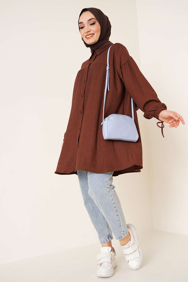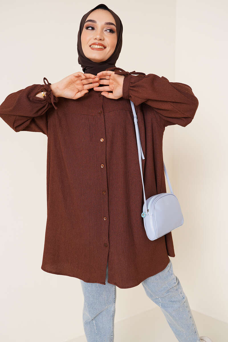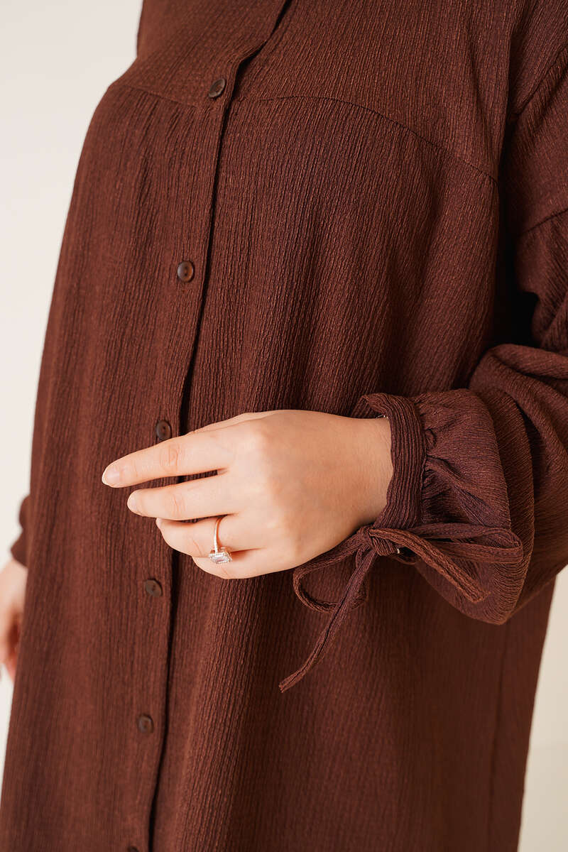 Bilek Bağlamalı Bürümcük Gömlek Kahve