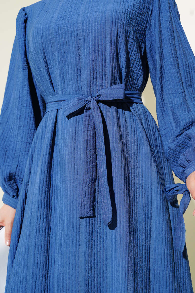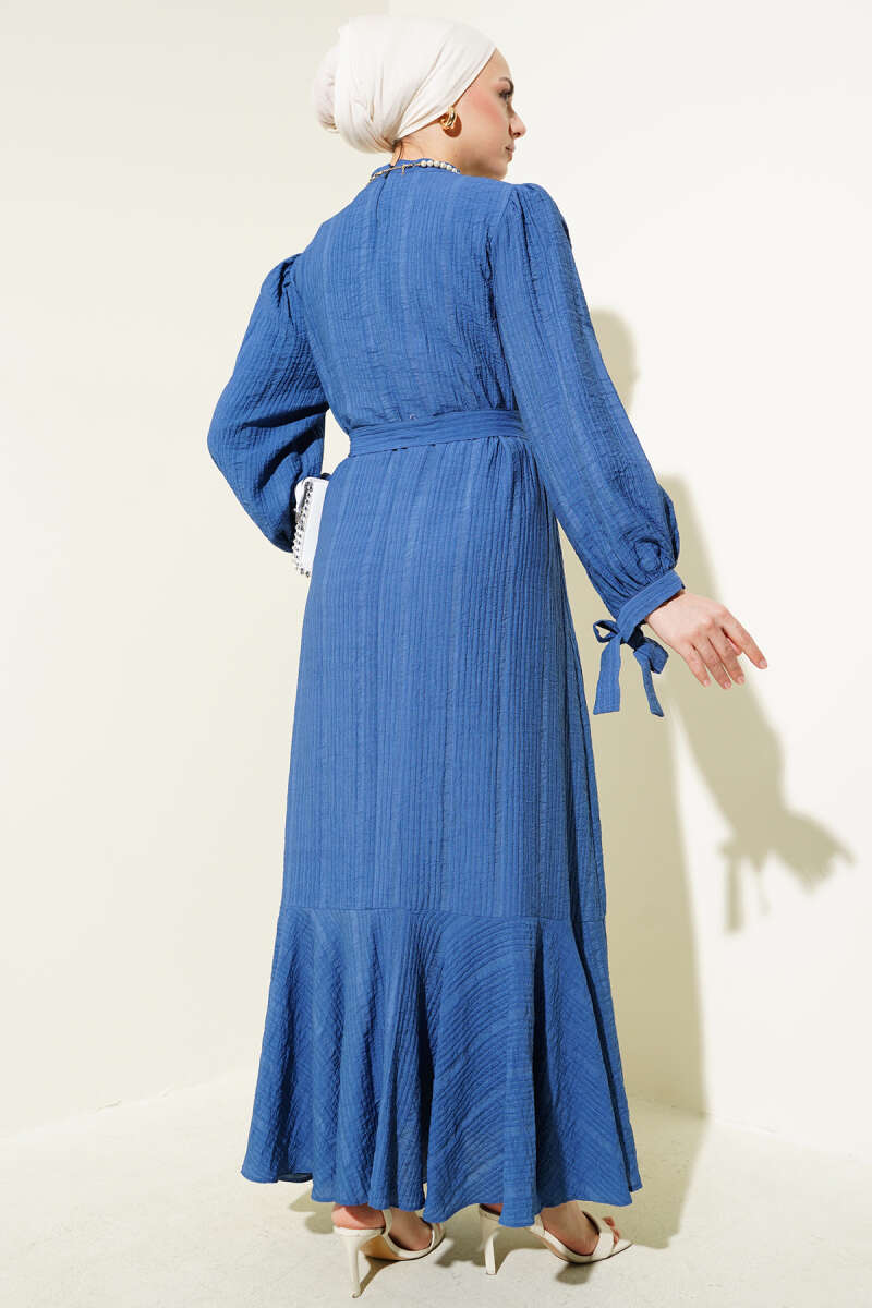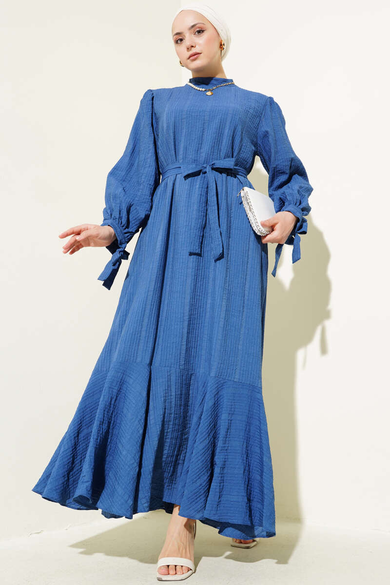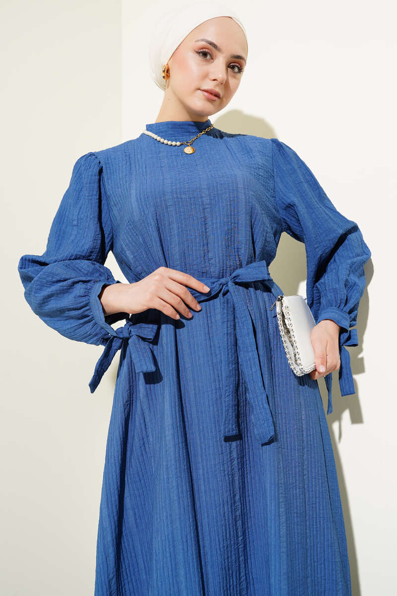 Kolları Fiyonk Detaylı Selanik Elbise Taş