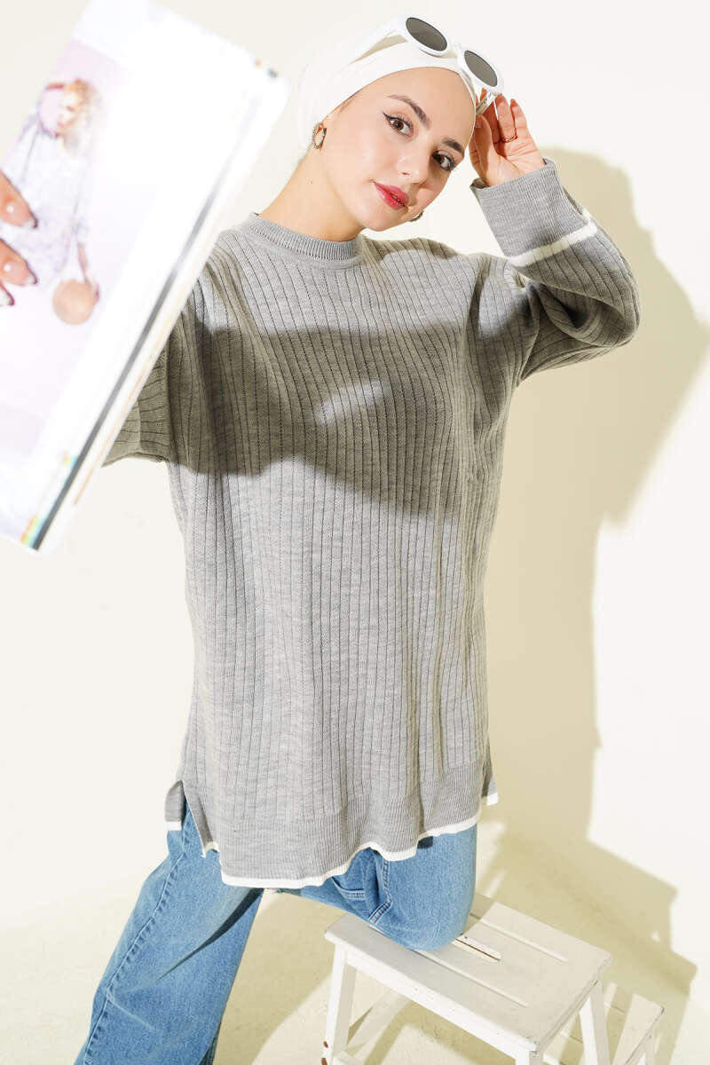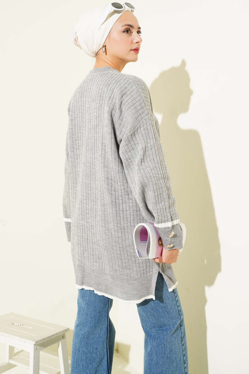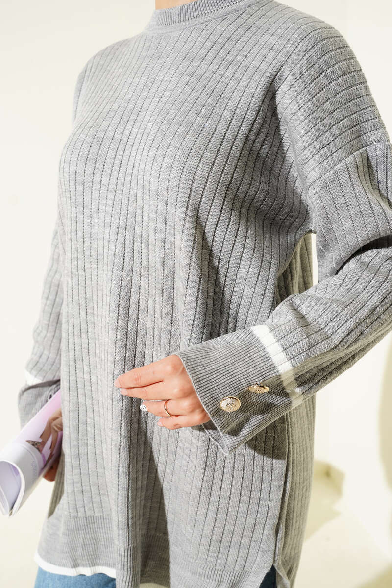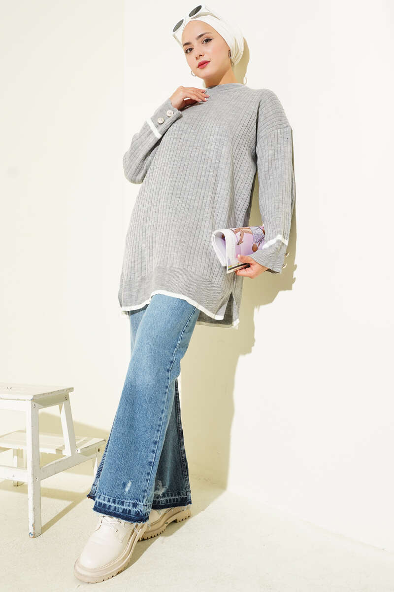 Bilek Düğmeli Fitilli Triko Tunik Taş