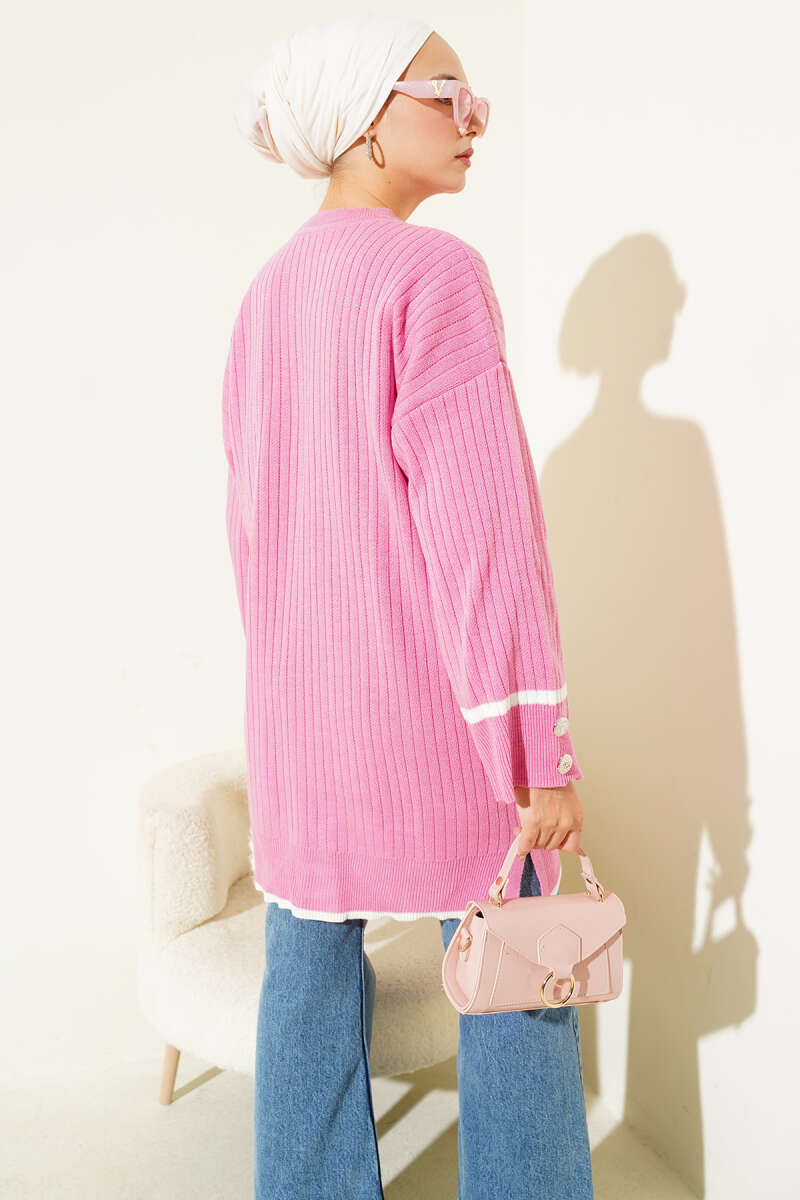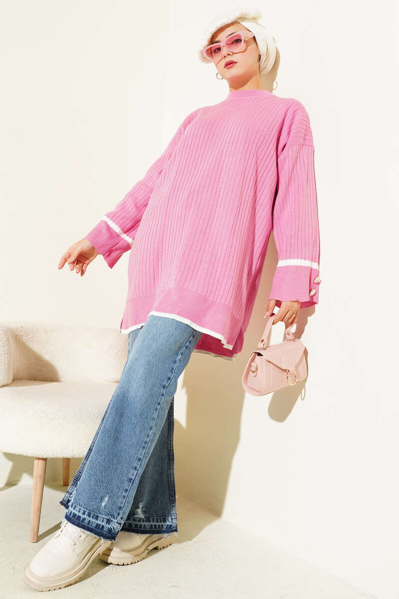 Bilek Düğmeli Fitilli Triko Tunik Taş