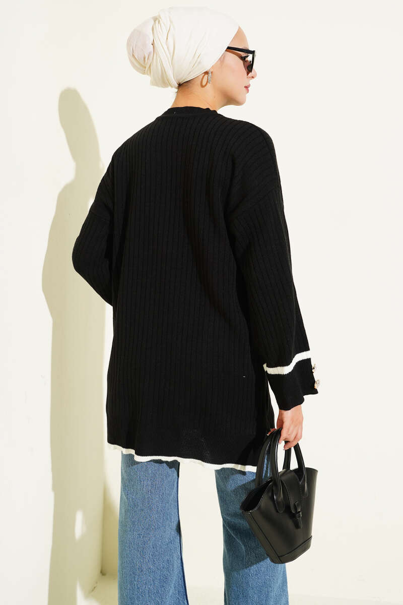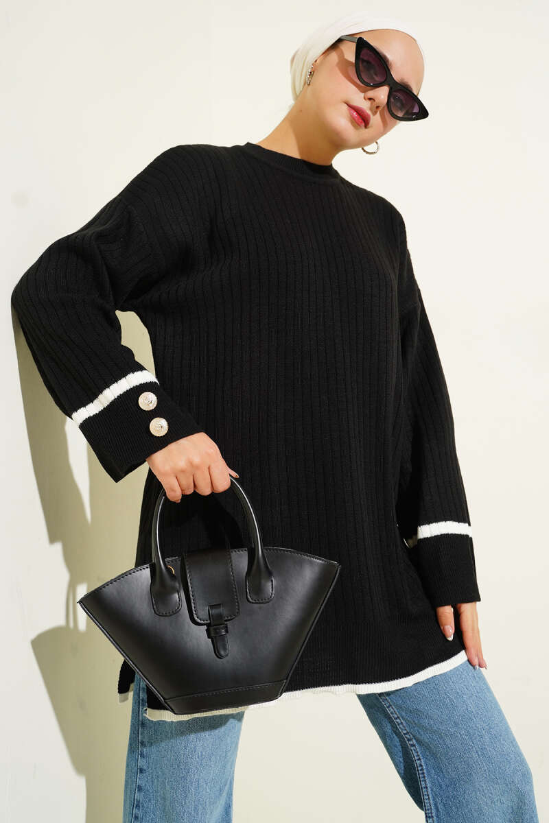 Bilek Düğmeli Fitilli Triko Tunik Taş