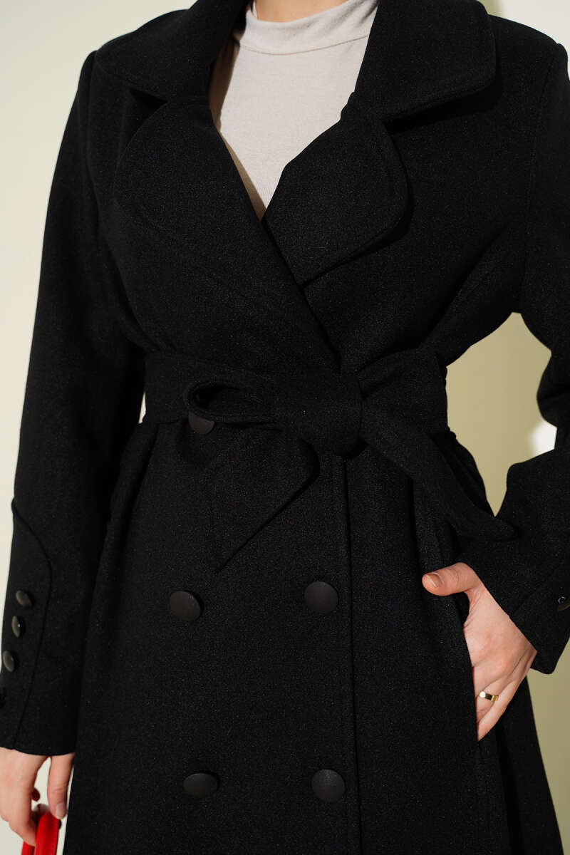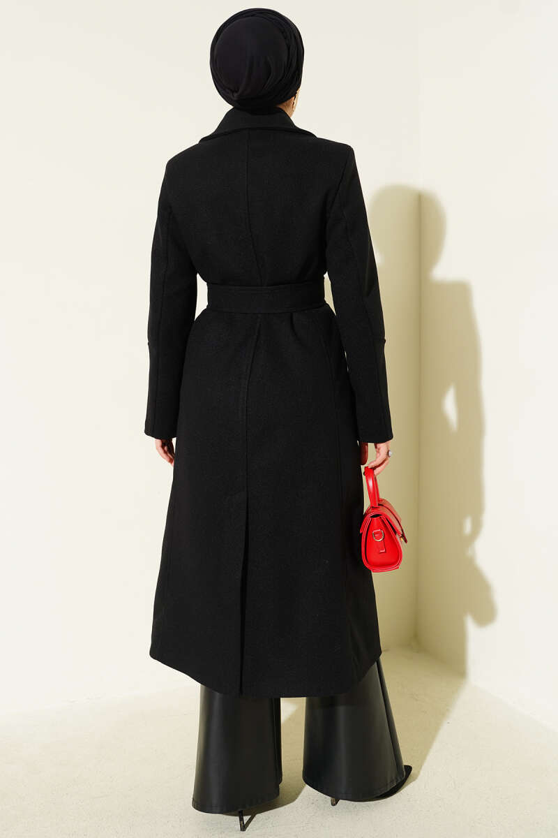 Kruvaze Yaka Omuz Apoletli Kaşe Kaban Siyah