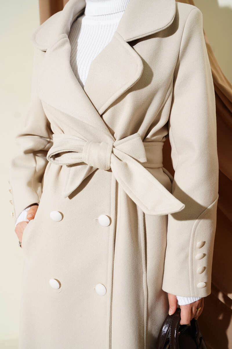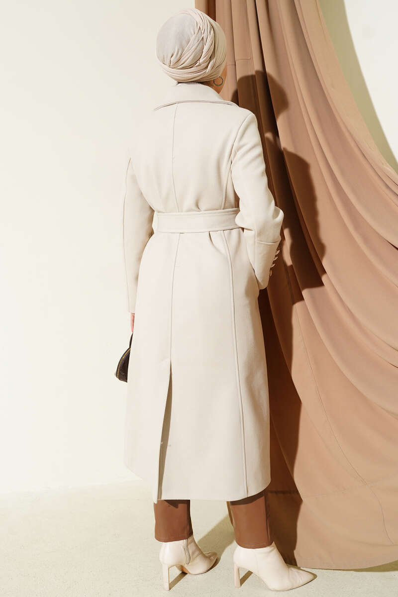 Kruvaze Yaka Omuz Apoletli Kaşe Kaban Camel