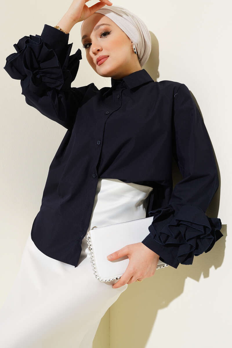 Bilek Fırfırlı Kısa Gömlek Lacivert