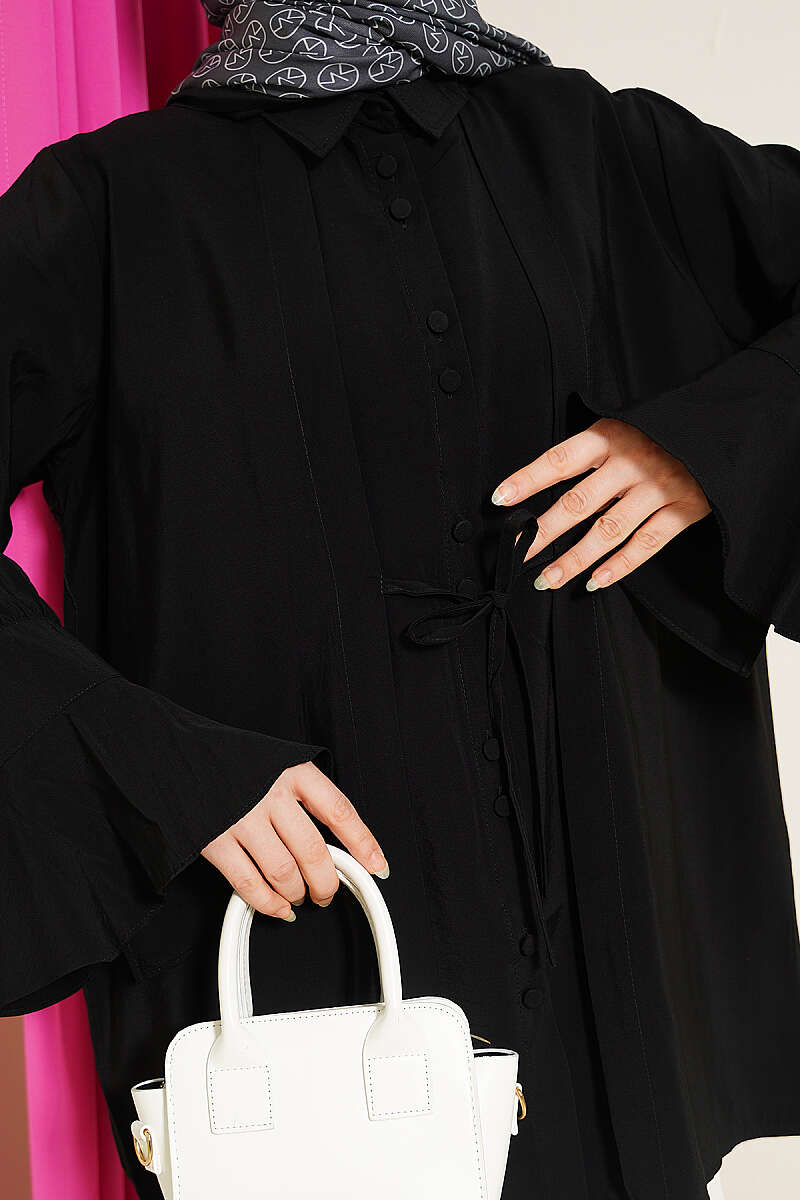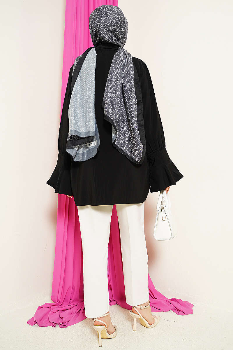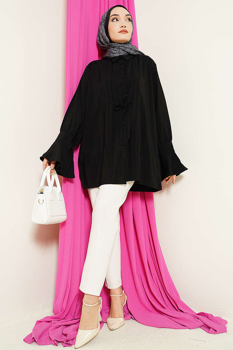 Bilek Fırfırlı Salaş Modal Gömlek Siyah