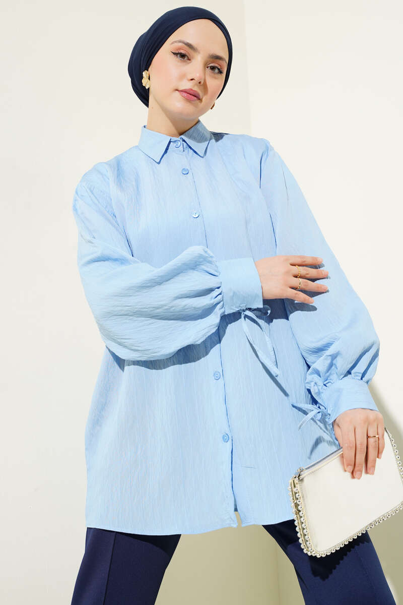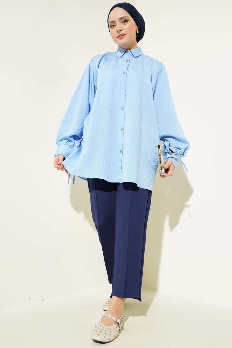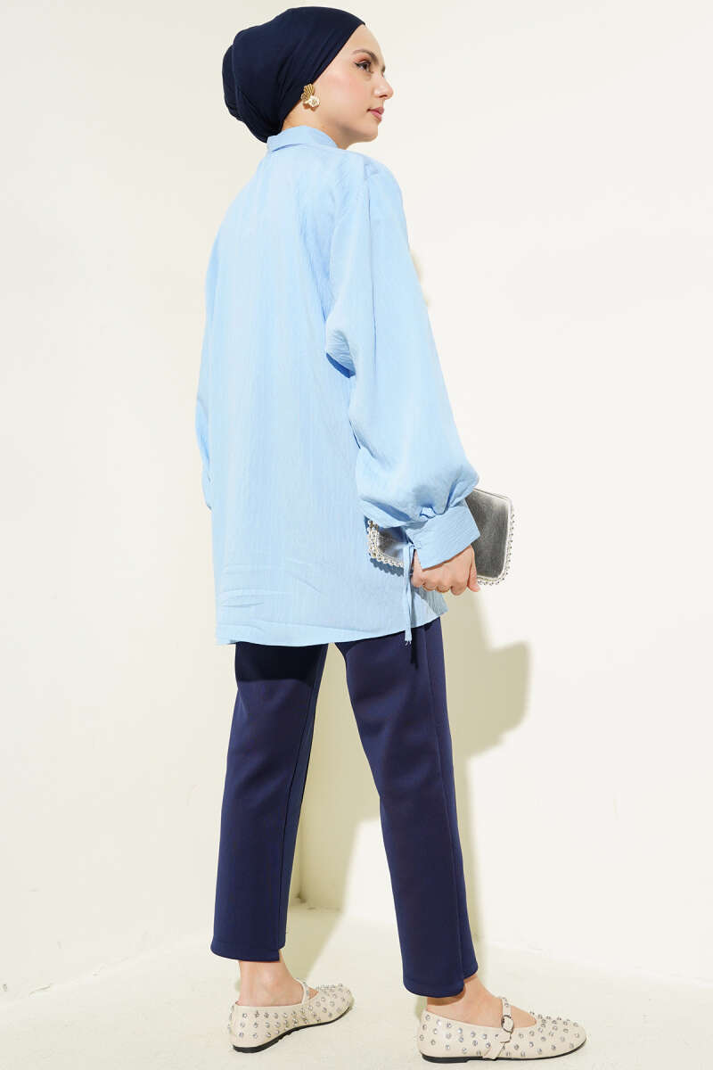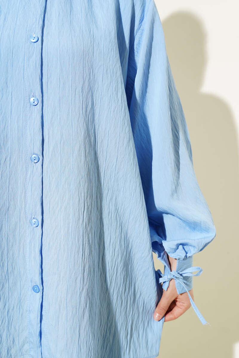 Bilek İp Bağcıklı Oversize Gömlek Bebe Mavi