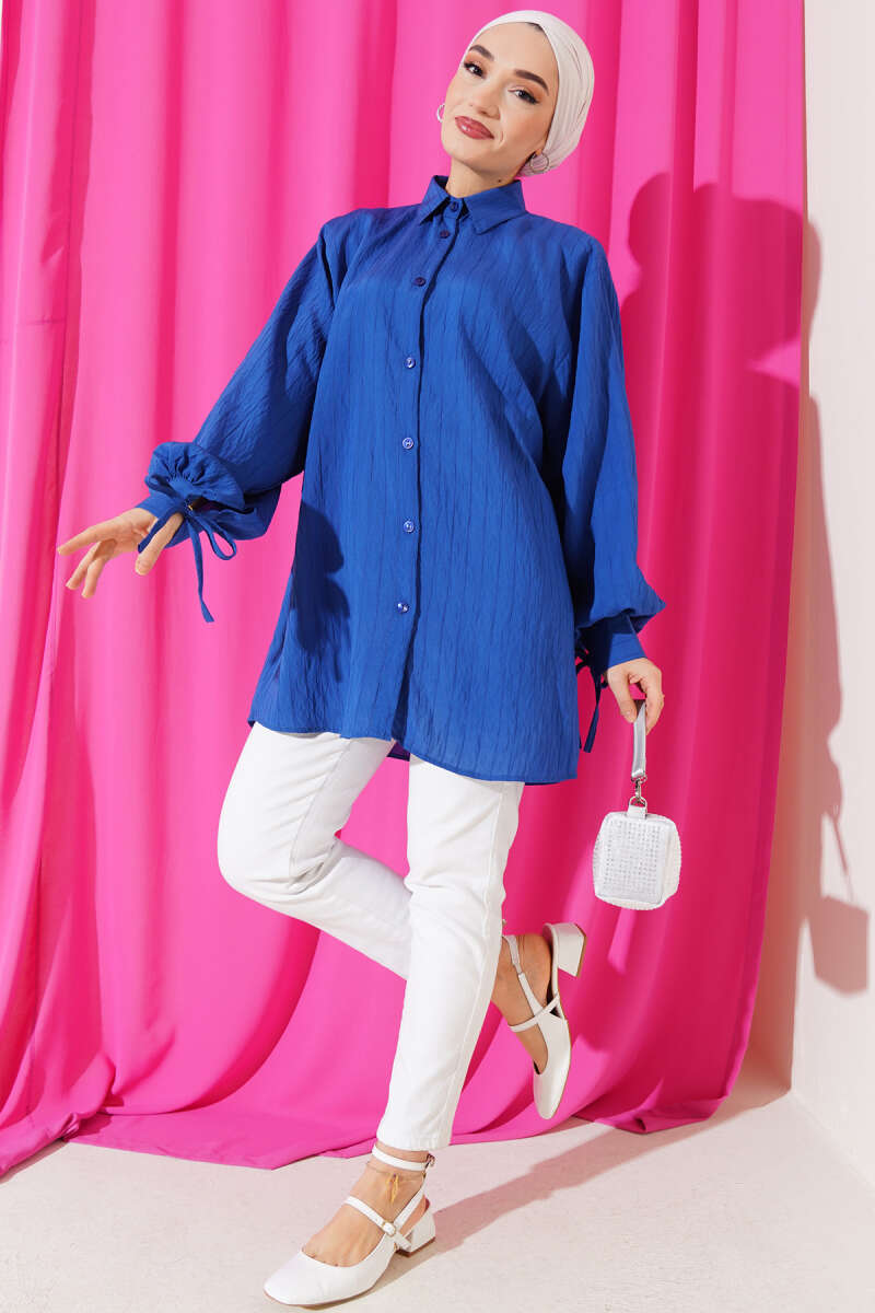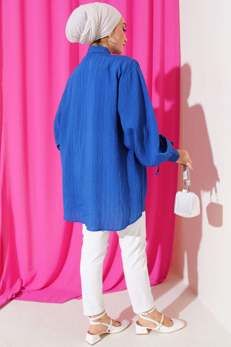 Bilek İp Bağcıklı Oversize Gömlek İndigo
