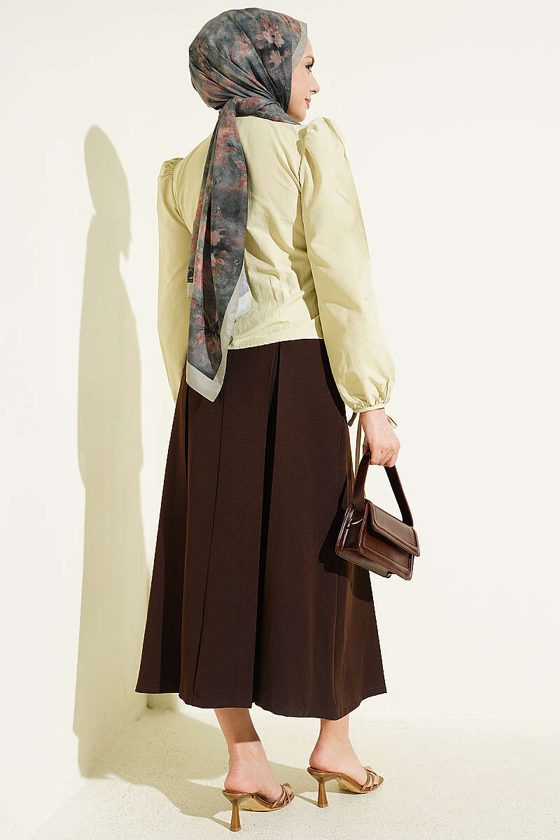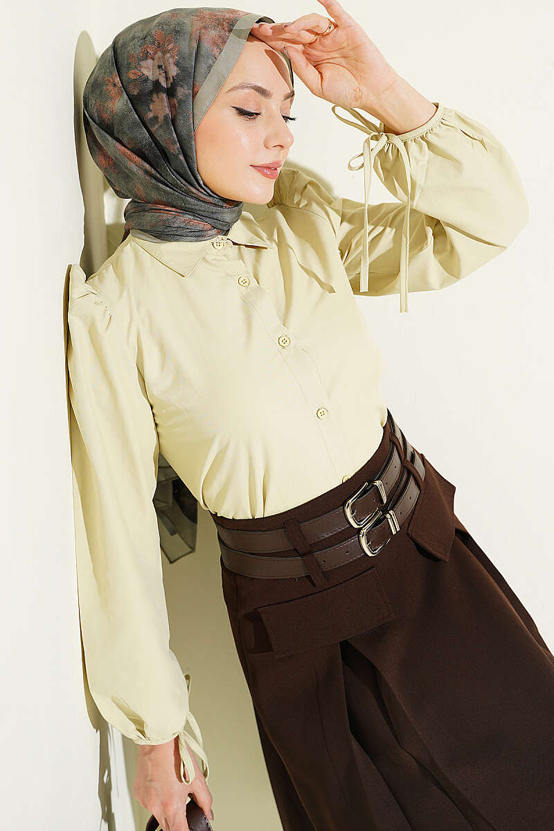 Bilek İpli Balon Kol Kısa Gömlek Adaçayı