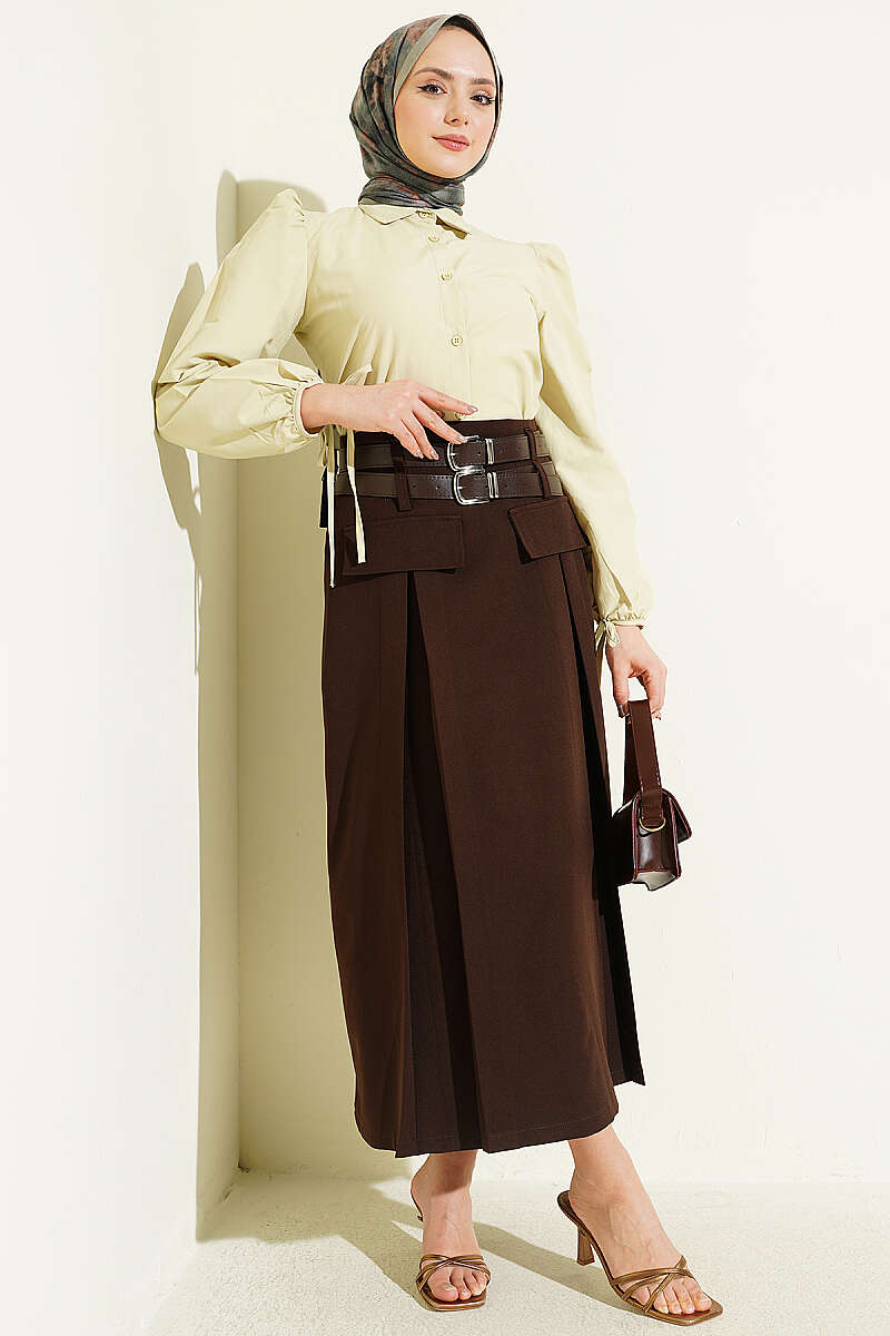 Kol Fırfırlı İp Kuşaklı Gömlek Kahve