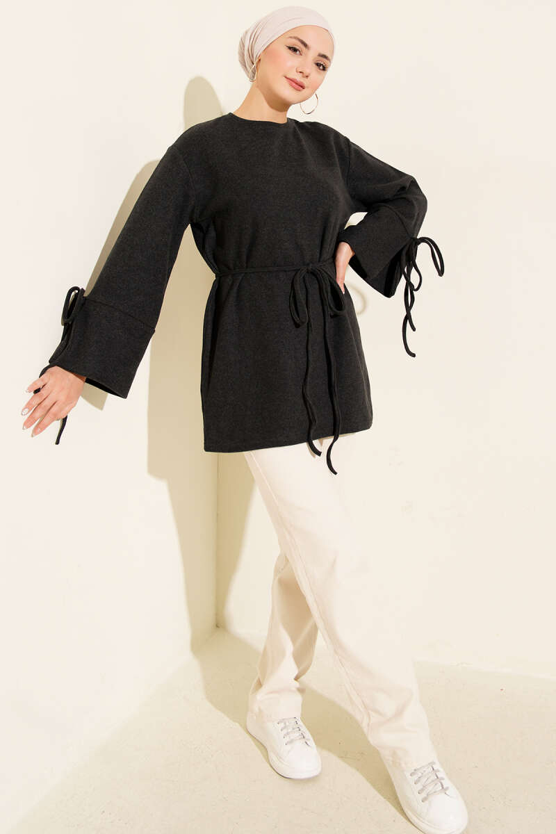 Bilek İpli Fitilli Kaşe Tunik Kahve