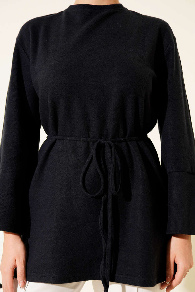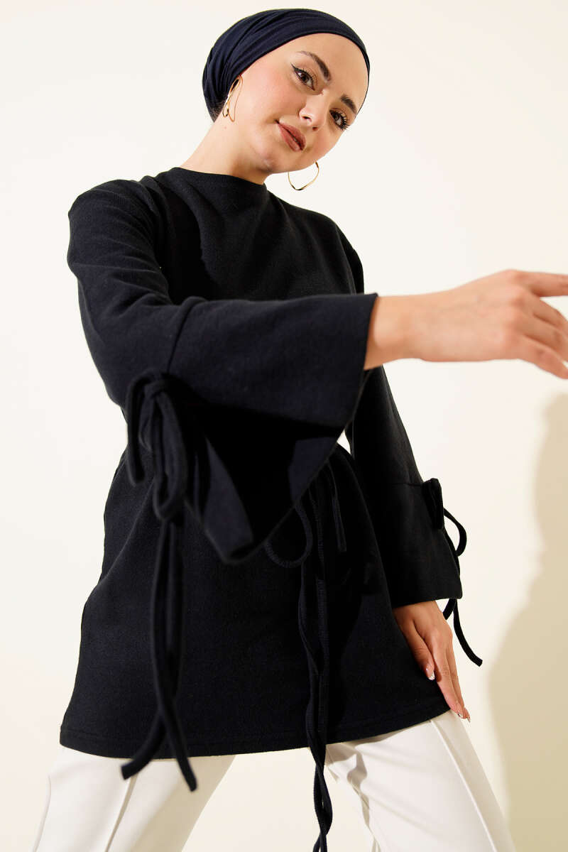 Bilek İpli Fitilli Kaşe Tunik Siyah