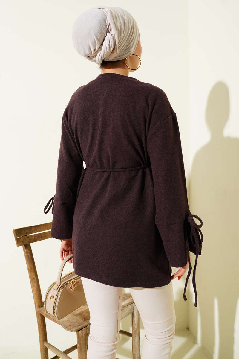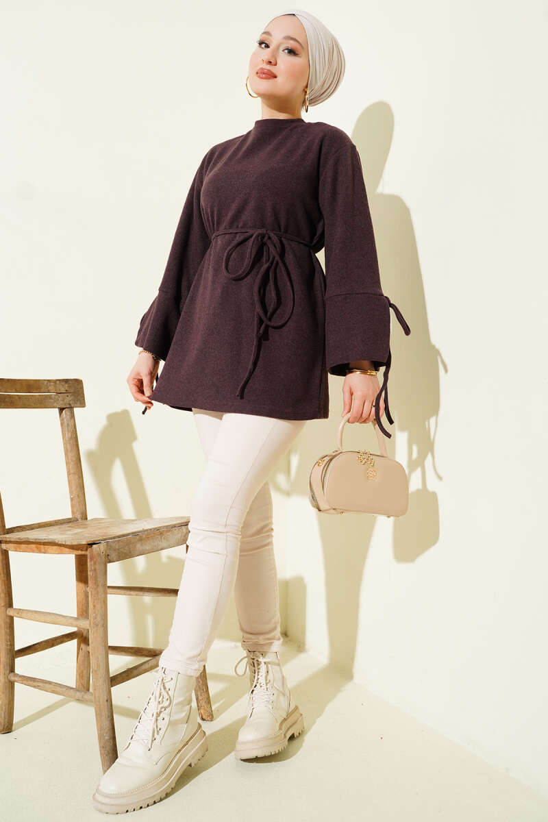 Bilek İpli Fitilli Kaşe Tunik Kahve