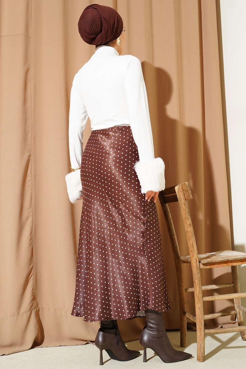 Bilek Düğmeli Fitilli Triko Tunik Kahve