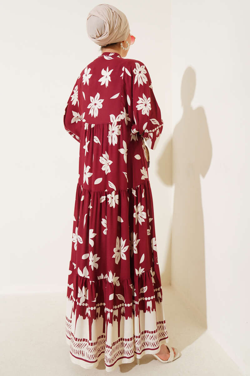 Bel Tünelli Gömlek Yaka Kot Elbise Füme