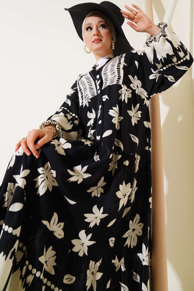 Bel Tünelli Gömlek Yaka Kot Elbise Siyah